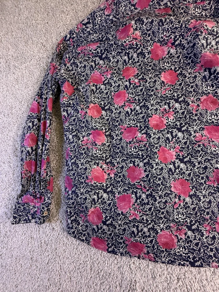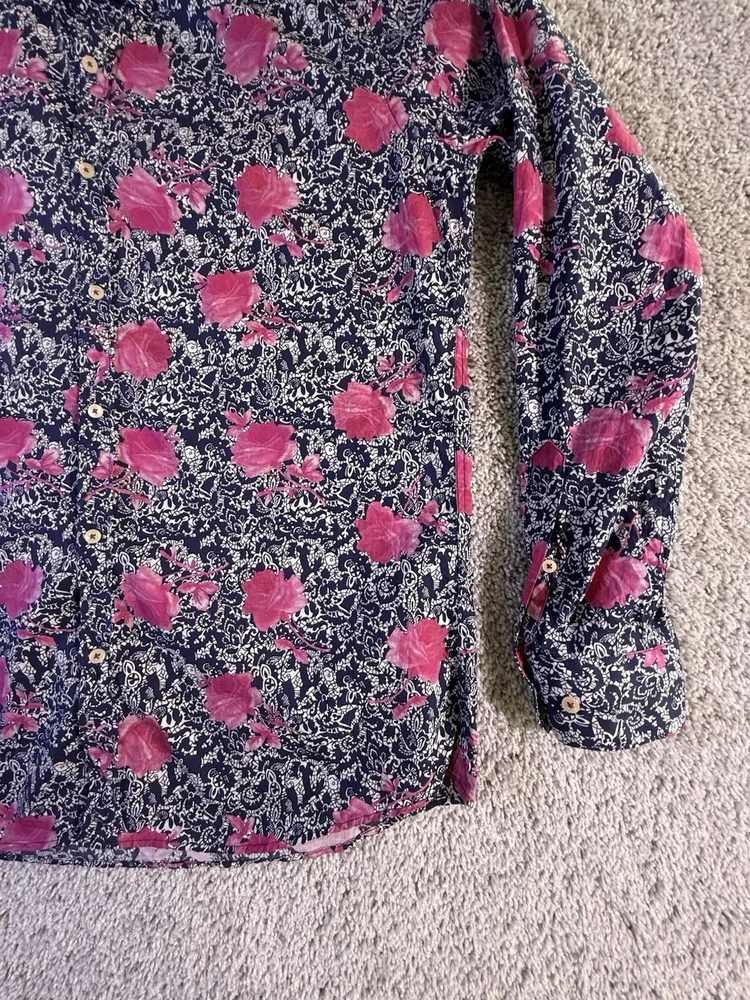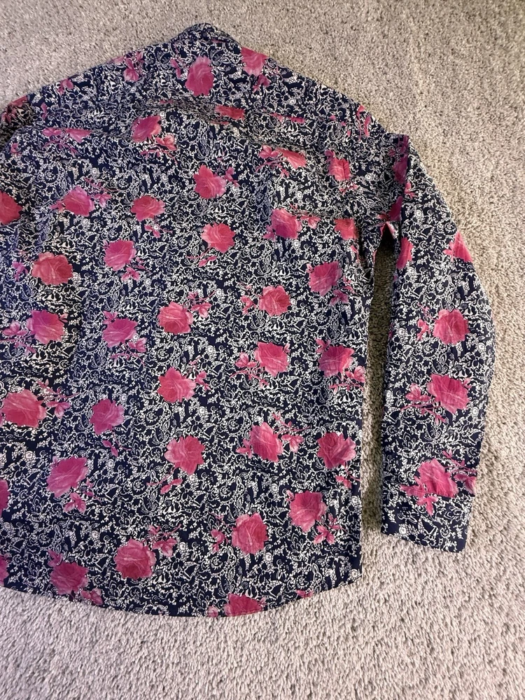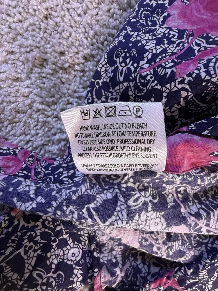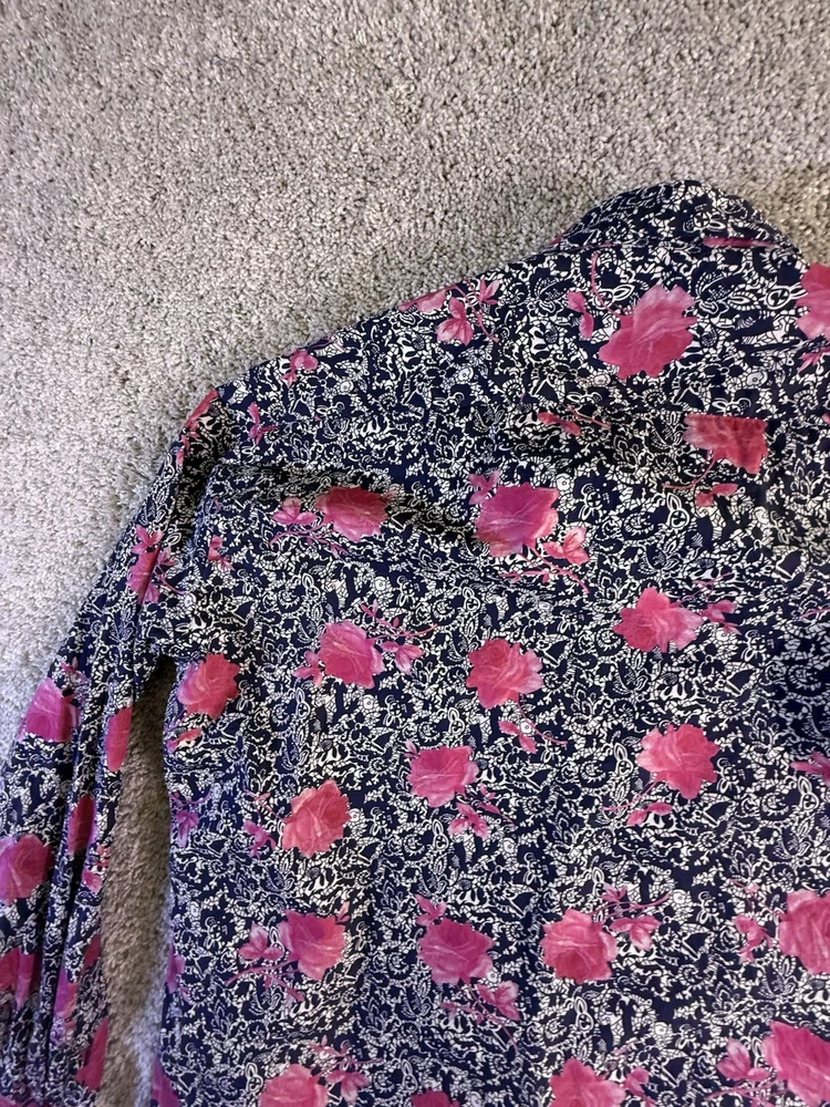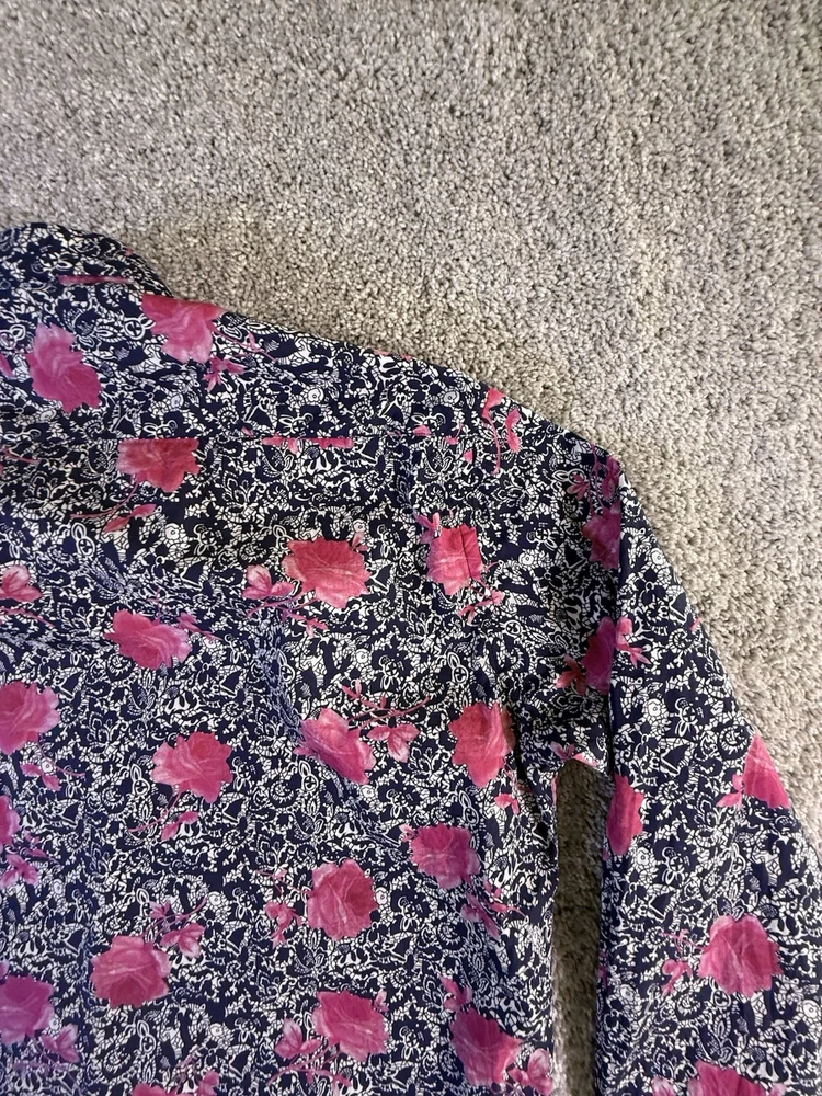 Just as described! Beautiful blouse as shown in photos. Fast shipping, great packaging and a good price! Item was in nice shape without any wrinkles when it stubbed. Thank you so much! I highly recommend this seller!