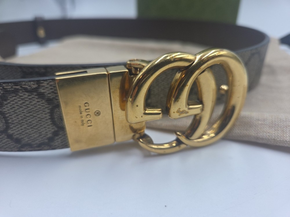 $ 5.63Slim Gucci Leather Belt 1 Inch Gold GG Buckle 80cm Women's Fashion