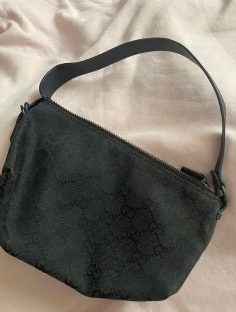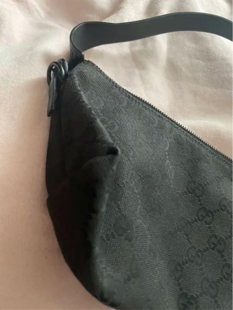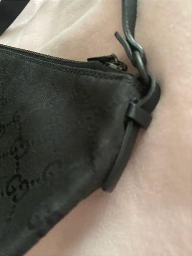 Gucci Black Nylon Leather Shoulder Bag with GC Shima Detail