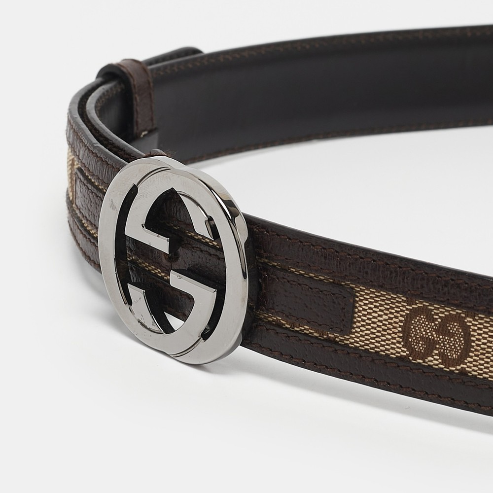 Elevate your style with this exquisite Gucci belt, marrying timeless Italian craftsmanship with modern flair. Crafted from GG canvas and supple leather, it exudes sophistication and luxury. The interlocking G buckle, a symbol of the brands heritage, adds a touch of elegance to any ensemble. Ideal for the fashion savvy woman, this beige accessory effortlessly complements your wardrobe, making it a must have for those who appreciate the finer things in life.Certified by The Luxury Closet - This item has gone through a detailed authentication process overseen by our experts. We offer a lifetime guarantee of authenticity on all our items. Import duties, taxes and charges are not included in the item price. These charges are the buyers responsibility. Please check with your country’s customs office to determine what these additional cost will be prior to buying. Our eBay Store About Us Contact Us Add to Favorite Sellers Gucci Beige/Brown GG Canvas and Leather Interlocking G Buckle Belt 85 CM $201.3 Elevate your style with this exquisite Gucci belt, marrying timeless Italian craftsmanship with modern flair. Crafted from GG canvas and supple leather, it exudes sophistication and luxury. The interlocking G buckle, a symbol of the brands heritage, adds a touch of elegance to any ensemble. Ideal for the fashion savvy woman, this beige accessory effortlessly complements your wardrobe, making it a must have for those who appreciate the finer things in life. Product Details Brand Color Beige Dimensions Width: 3 cm, Length: 85 cm Material Canvas, Leather Size 85 CM Outsole Width Outsole Length Heel Height Includes The Luxury Closet Packaging Certified by The Luxury Closet This item has gone through a detailed authentication process overseen by our experts. We offer a lifetime guarantee of authenticity on all our items. How We Check The in-house team of experts at The Luxury Closet is highly trained to verify the authenticity and the condition of the luxury products. They ensure that only 100% authentic items are put on sale.The evaluation process is unique with its own mix of assessment criteria and differs according to the category. Each item is evaluated based on the following combination of hallmarks, hardware, stitching, symmetry, material, craftsmanship, stamping, codes, hologram stickers, and packaging. Our authenticators also check if the items have been modified or amended (e.g., aftermarket diamonds, replaced batteries, repaired bags, etc.) International Buyers Import duties, taxes and charges are not included in the item price. These charges are the buyers responsibility. Please check with your country’s customs office to determine what these additional cost will be prior to buying.