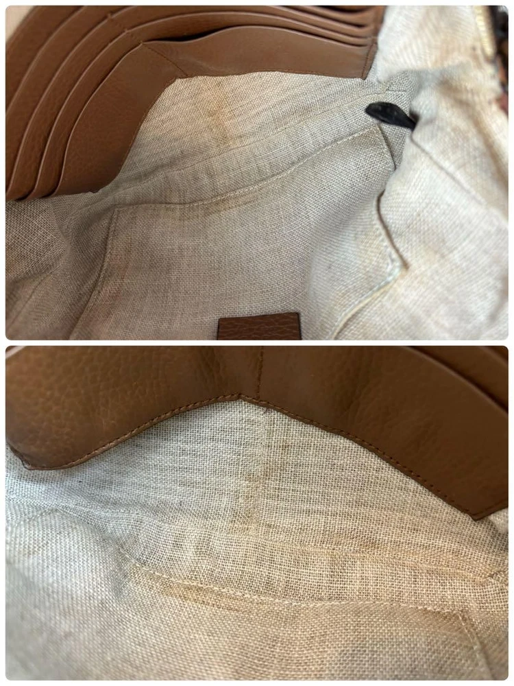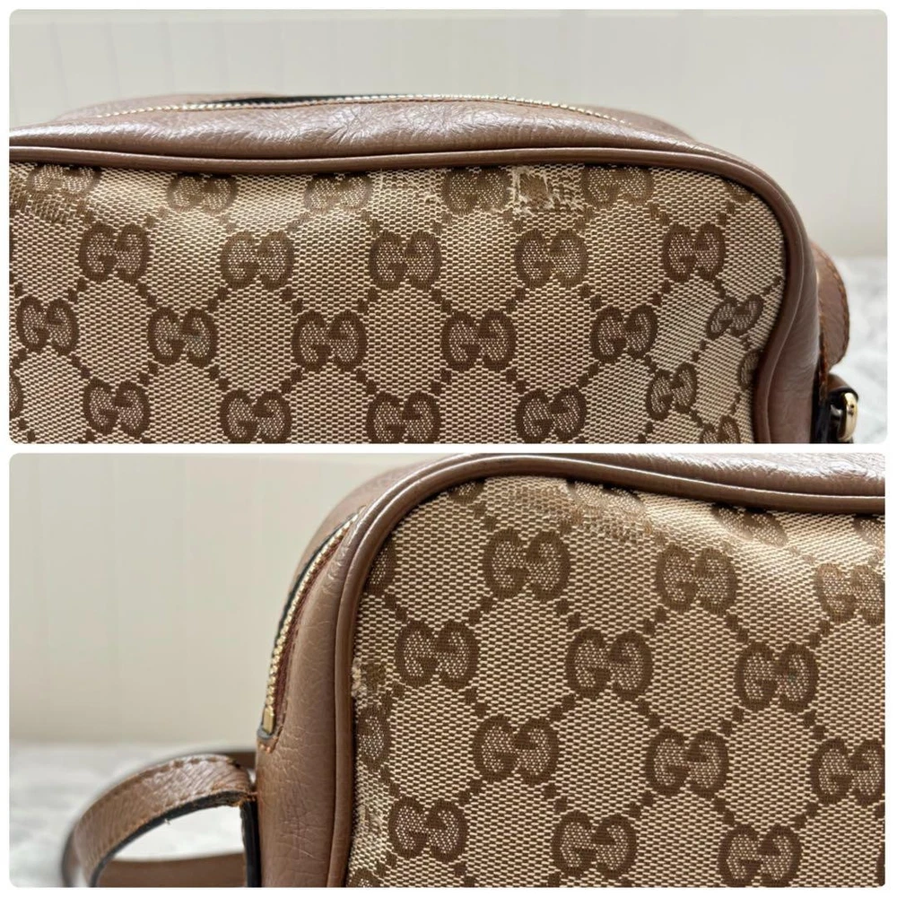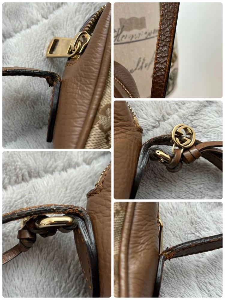 This Gucci GG canvas shoulder bag is a stunning luxury piece with timeless appeal! Despite some minor wear like scratches and edge cracking, it’s in great condition—the interlocking G charm adds such elegance. The size is perfect for daily essentials, and the clasp works smoothly. The inside has slight dirt but nothing major, and the thread breakage in the pocket is barely noticeable. It still looks and feels luxurious, and the fast shipping promise is a huge plus. A fantastic pre-loved find for any fashion lover!