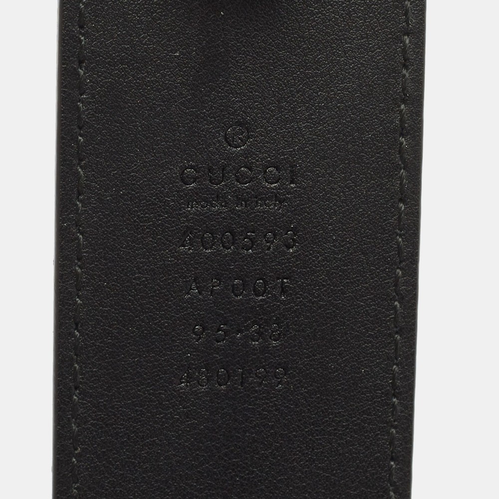 A power piece from Gucci’s coveted Marmont line, this wide black leather belt boasts a bold antique gold tone GG buckle. Measuring 95CM, it’s the ultimate statement accessory to define your silhouette and elevate everything from denim to dresses.Certified by The Luxury Closet - This item has gone through a detailed authentication process overseen by our experts. We offer a lifetime guarantee of authenticity on all our items. Import duties, taxes and charges are not included in the item price. These charges are the buyers responsibility. Please check with your country’s customs office to determine what these additional cost will be prior to buying. Our eBay Store About Us Contact Us Add to Favorite Sellers Gucci Black Leather GG Marmont Wide Buckle Belt 95CM $295.9 A power piece from Gucci’s coveted Marmont line, this wide black leather belt boasts a bold antique gold tone GG buckle. Measuring 95CM, it’s the ultimate statement accessory to define your silhouette and elevate everything from denim to dresses. Product Details Brand Color Black Dimensions Material Leather Size 95CM Outsole Width Outsole Length Heel Height Includes Certified by The Luxury Closet This item has gone through a detailed authentication process overseen by our experts. We offer a lifetime guarantee of authenticity on all our items. How We Check The in-house team of experts at The Luxury Closet is highly trained to verify the authenticity and the condition of the luxury products. They ensure that only 100% authentic items are put on sale.The evaluation process is unique with its own mix of assessment criteria and differs according to the category. Each item is evaluated based on the following combination of hallmarks, hardware, stitching, symmetry, material, craftsmanship, stamping, codes, hologram stickers, and packaging. Our authenticators also check if the items have been modified or amended (e.g., aftermarket diamonds, replaced batteries, repaired bags, etc.) International Buyers Import duties, taxes and charges are not included in the item price. These charges are the buyers responsibility. Please check with your country’s customs office to determine what these additional cost will be prior to buying.