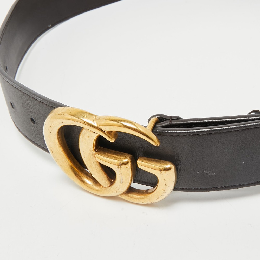 Gucci’s GG Marmont belt in dark brown leather is a versatile accessory with classic appeal. Its structured form and recognizable branding make it ideal for accentuating the waist or threading through polished trousers. A timeless addition to any wardrobe.Certified by The Luxury Closet - This item has gone through a detailed authentication process overseen by our experts. We offer a lifetime guarantee of authenticity on all our items. Import duties, taxes and charges are not included in the item price. These charges are the buyers responsibility. Please check with your country’s customs office to determine what these additional cost will be prior to buying. Our eBay Store About Us Contact Us Add to Favorite Sellers Gucci Dark Brown Leather GG Marmont Buckle Belt 80CM $430.1 Gucci’s GG Marmont belt in dark brown leather is a versatile accessory with classic appeal. Its structured form and recognizable branding make it ideal for accentuating the waist or threading through polished trousers. A timeless addition to any wardrobe. Product Details Brand Color Brown Dimensions Material Leather Size 80CM Outsole Width Outsole Length Heel Height Includes Certified by The Luxury Closet This item has gone through a detailed authentication process overseen by our experts. We offer a lifetime guarantee of authenticity on all our items. How We Check The in-house team of experts at The Luxury Closet is highly trained to verify the authenticity and the condition of the luxury products. They ensure that only 100% authentic items are put on sale.The evaluation process is unique with its own mix of assessment criteria and differs according to the category. Each item is evaluated based on the following combination of hallmarks, hardware, stitching, symmetry, material, craftsmanship, stamping, codes, hologram stickers, and packaging. Our authenticators also check if the items have been modified or amended (e.g., aftermarket diamonds, replaced batteries, repaired bags, etc.) International Buyers Import duties, taxes and charges are not included in the item price. These charges are the buyers responsibility. Please check with your country’s customs office to determine what these additional cost will be prior to buying.