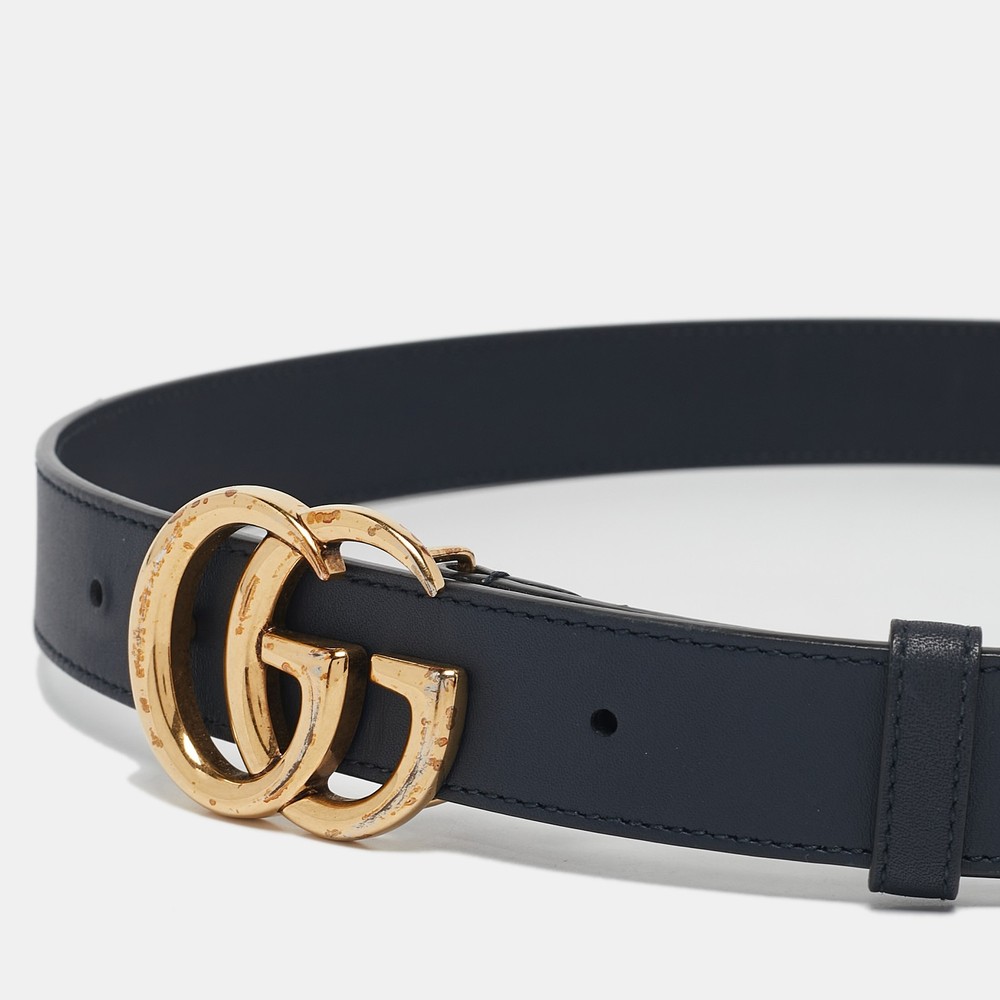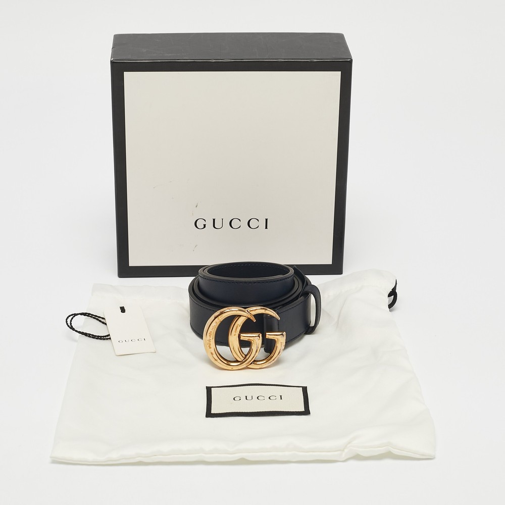 Elevate your ensemble with this sophisticated navy leather belt, a hallmark of Italian craftsmanship. The iconic GG Marmont buckle exudes exclusivity and sets a refined tone, aligning perfectly with men who appreciate styles finer details. Guccis heritage of luxury is evident in every stitch, ensuring this accessory not only complements but enhances your wardrobe. Unwavering in quality, this piece is designed to leave a lasting impression, making it a must have for the modern gentleman.Certified by The Luxury Closet - This item has gone through a detailed authentication process overseen by our experts. We offer a lifetime guarantee of authenticity on all our items. Import duties, taxes and charges are not included in the item price. These charges are the buyers responsibility. Please check with your country’s customs office to determine what these additional cost will be prior to buying. Our eBay Store About Us Contact Us Add to Favorite Sellers Gucci Navy Blue Leather GG Marmont Buckle Belt 90 CM $286 Elevate your ensemble with this sophisticated navy leather belt, a hallmark of Italian craftsmanship. The iconic GG Marmont buckle exudes exclusivity and sets a refined tone, aligning perfectly with men who appreciate styles finer details. Guccis heritage of luxury is evident in every stitch, ensuring this accessory not only complements but enhances your wardrobe. Unwavering in quality, this piece is designed to leave a lasting impression, making it a must have for the modern gentleman. Product Details Brand Color Navy Blue Dimensions Width: 3 cm, Length: 90 cm Material Leather Size 90 CM Outsole Width Outsole Length Heel Height Includes Original Dustbag, Original Box Certified by The Luxury Closet This item has gone through a detailed authentication process overseen by our experts. We offer a lifetime guarantee of authenticity on all our items. How We Check The in-house team of experts at The Luxury Closet is highly trained to verify the authenticity and the condition of the luxury products. They ensure that only 100% authentic items are put on sale.The evaluation process is unique with its own mix of assessment criteria and differs according to the category. Each item is evaluated based on the following combination of hallmarks, hardware, stitching, symmetry, material, craftsmanship, stamping, codes, hologram stickers, and packaging. Our authenticators also check if the items have been modified or amended (e.g., aftermarket diamonds, replaced batteries, repaired bags, etc.) International Buyers Import duties, taxes and charges are not included in the item price. These charges are the buyers responsibility. Please check with your country’s customs office to determine what these additional cost will be prior to buying.