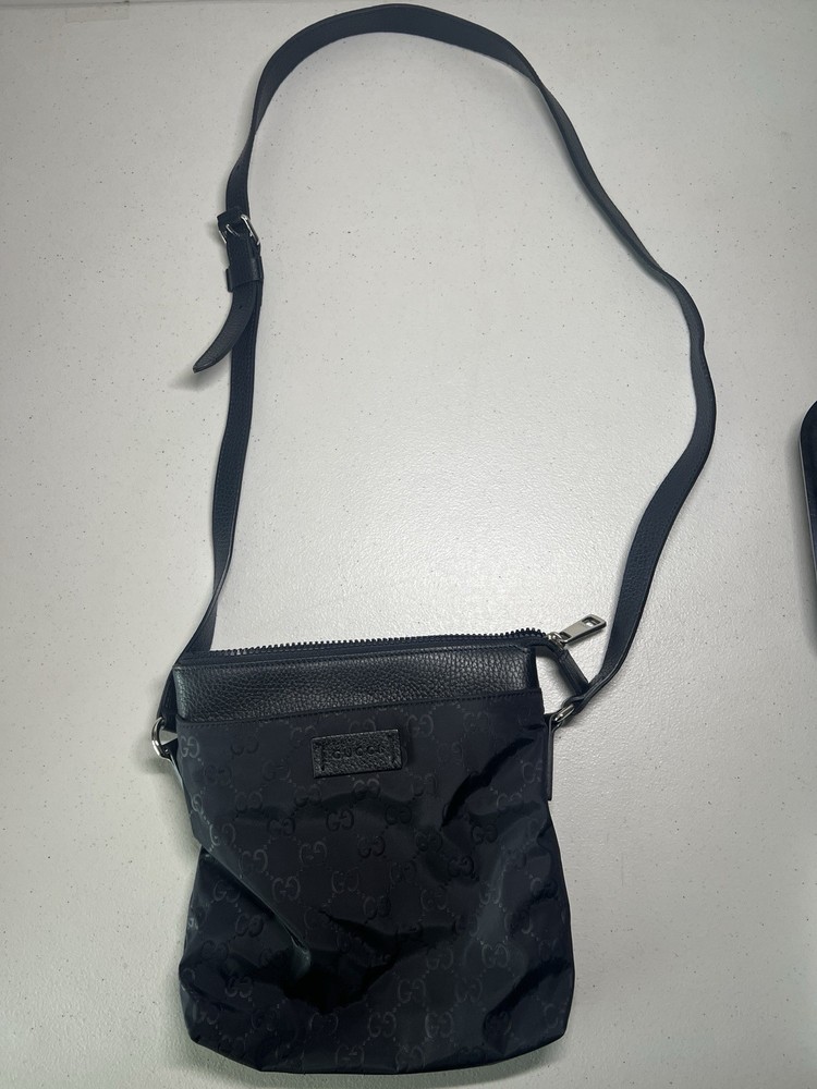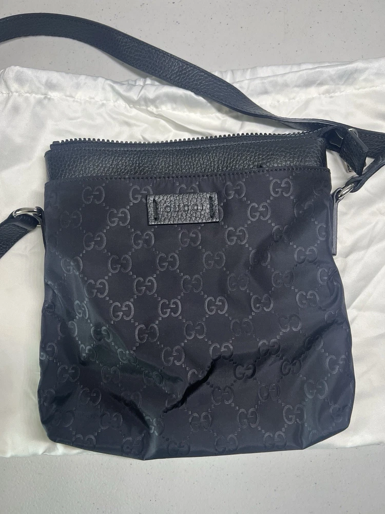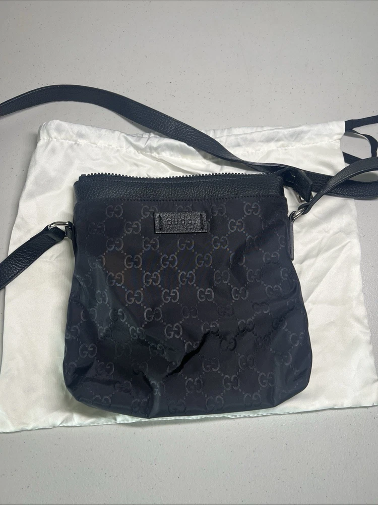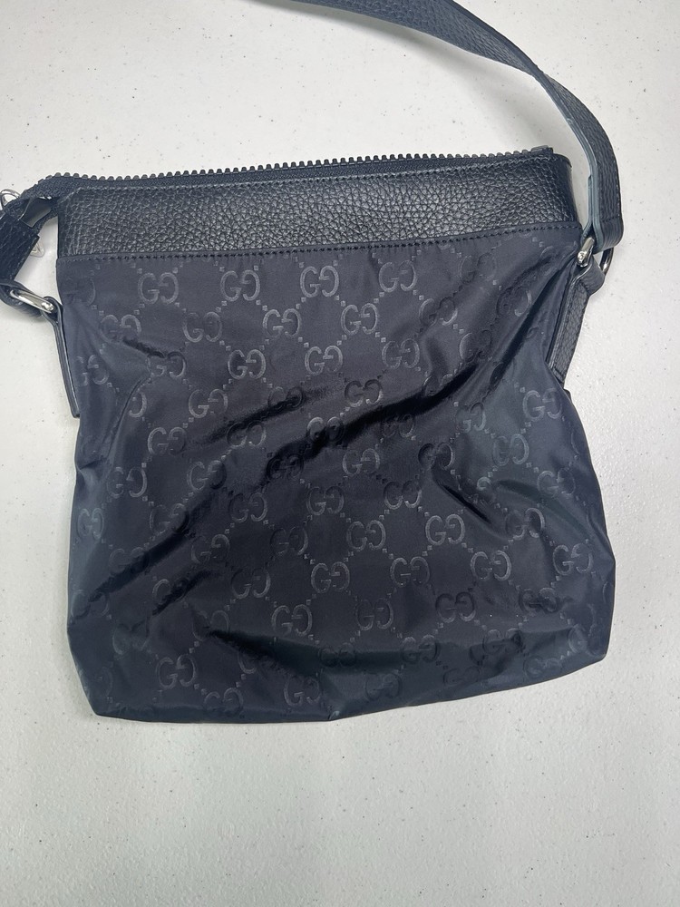 The Gucci GG Nylon Crossbody with Leather Adjustable Strap is a stylish and versatile accessory for women. Made with a durable nylon exterior and luxurious leather lining, this crossbody bag features the iconic Gucci GG pattern and a sophisticated leather adjustable strap. The black exterior color adds a sleek touch to the overall design, making it a perfect complement to any outfit. With its brand prestige and high-quality materials, this Gucci GG Crossbody is a must-have for those looking to add a touch of luxury to their everyday style. Like new only used toys