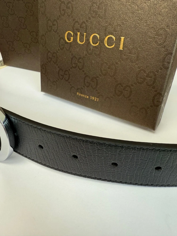 Vintage GUCCI GG Logo Gold Buckle Made in Italy Authentic Leather Belt