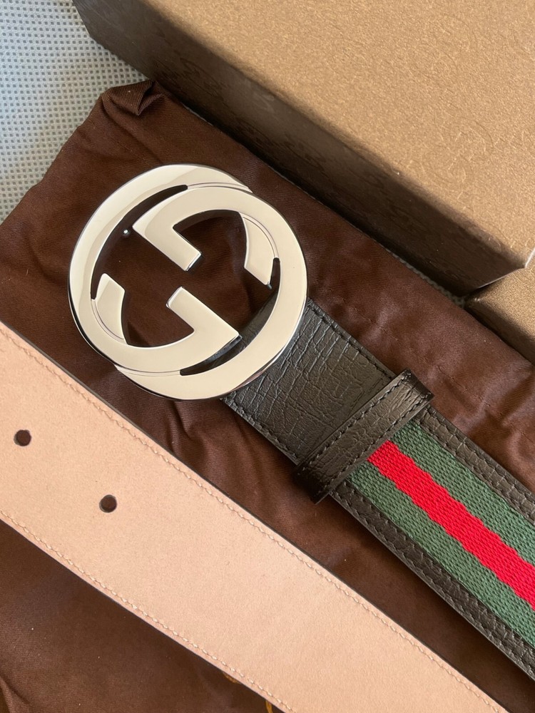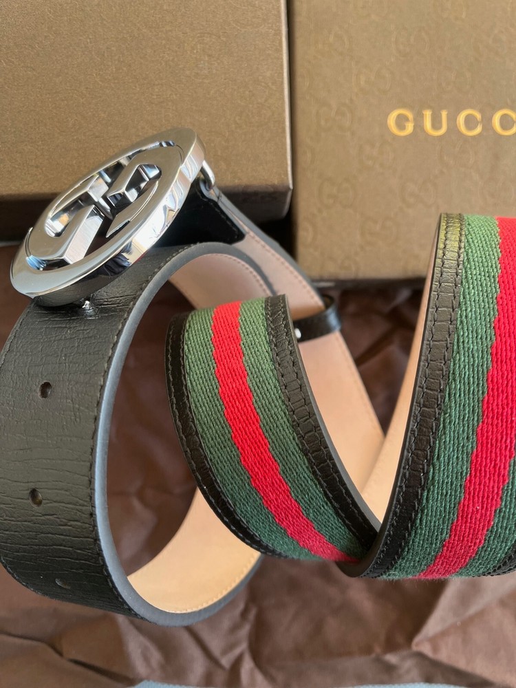 Gucci GG Silver Interlocking Buckle Web Belt Black,Green,Red Canvas Size 105 cm fit's 36-38 waist in Excellent Condition New Belt, comes with Box , Dust Bag & Tag's.
