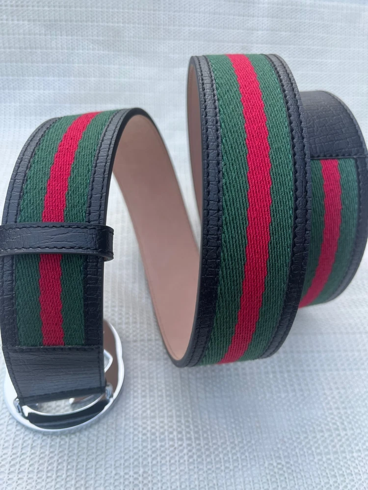 Gucci GG Silver Buckle Web Belt in Black Green Red Size 115cm Fits 40w