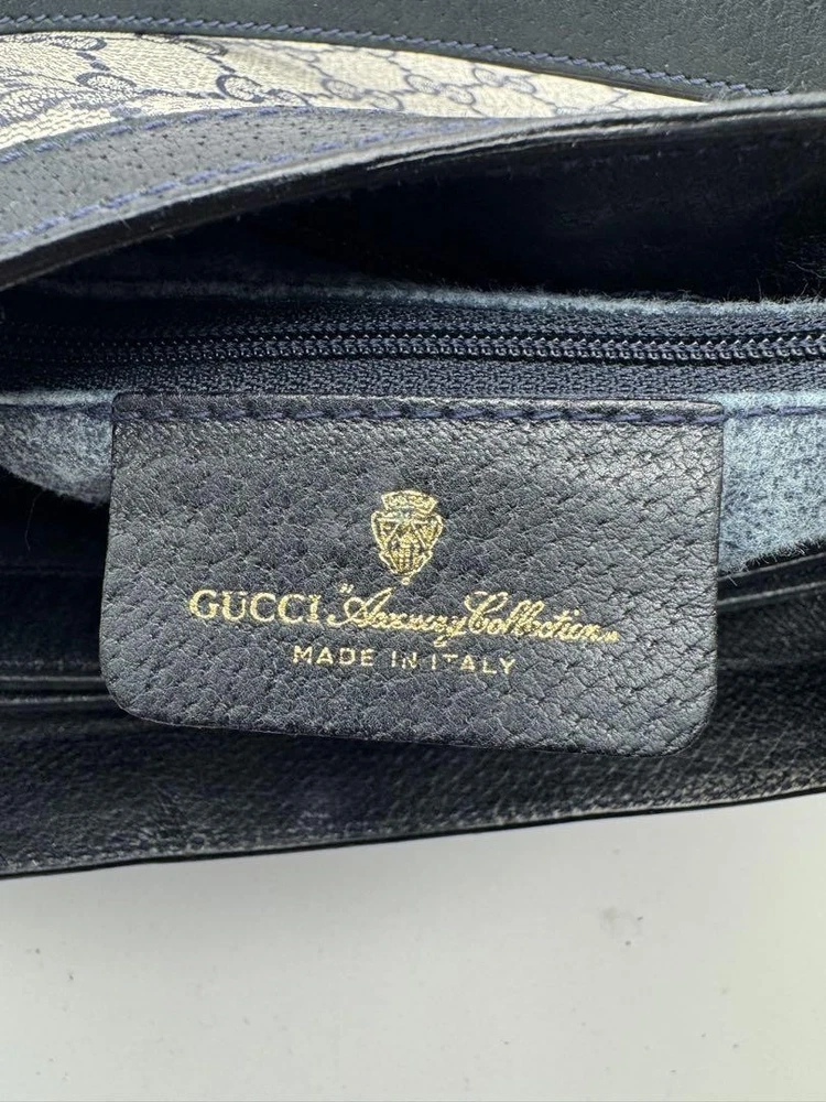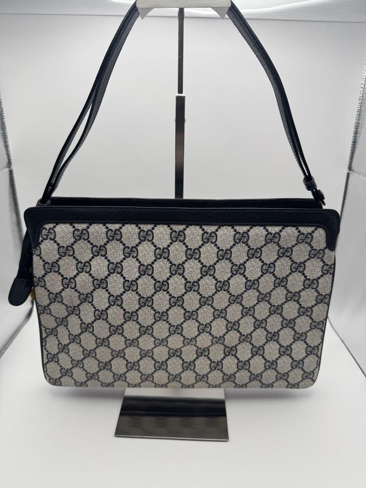 Gucci Gg Nylon Leather Shoulder Bag Silver Metal Fittings Black