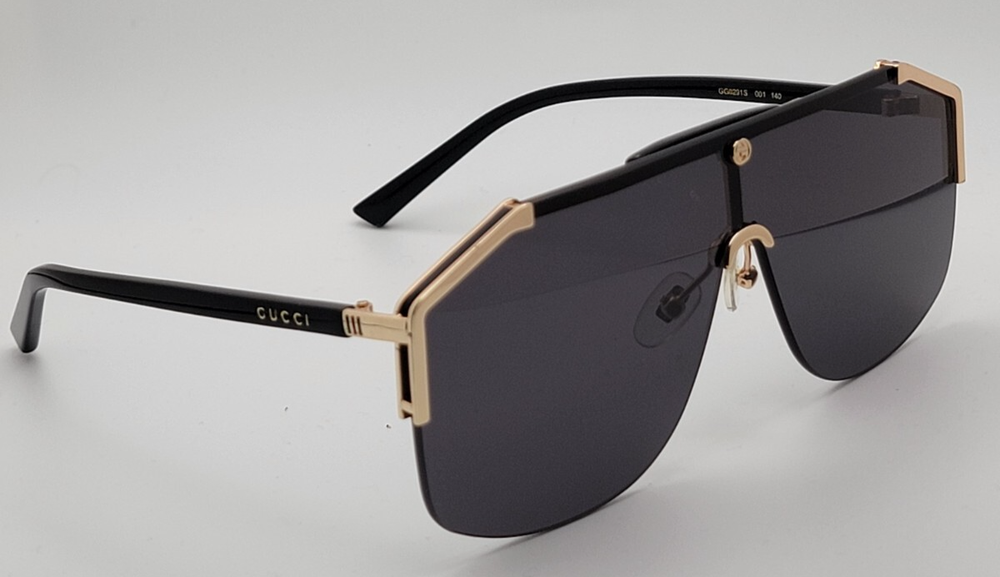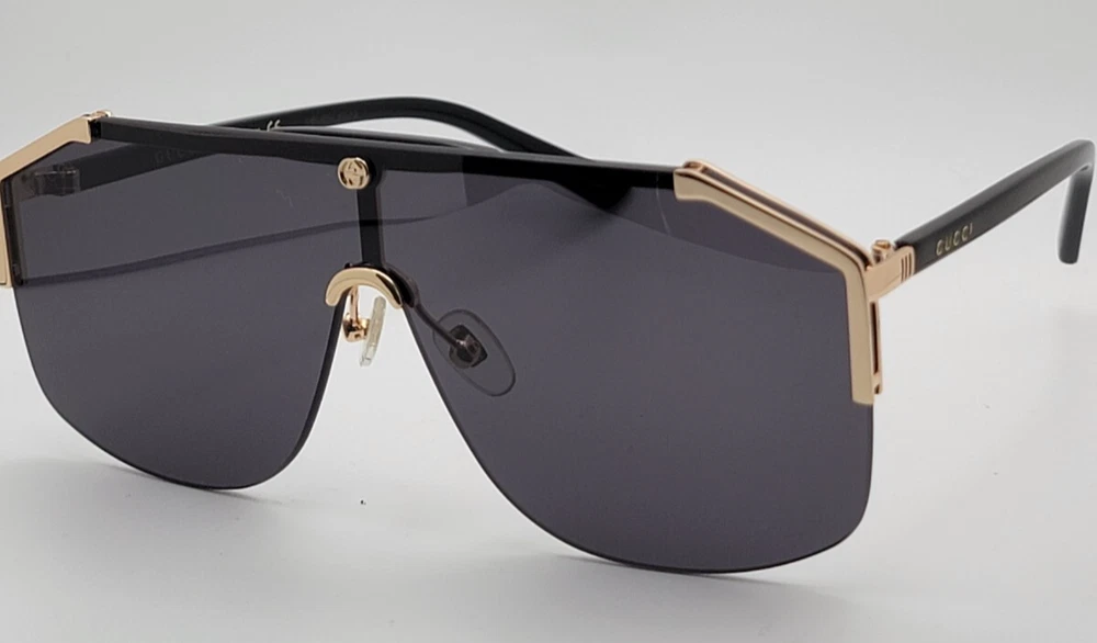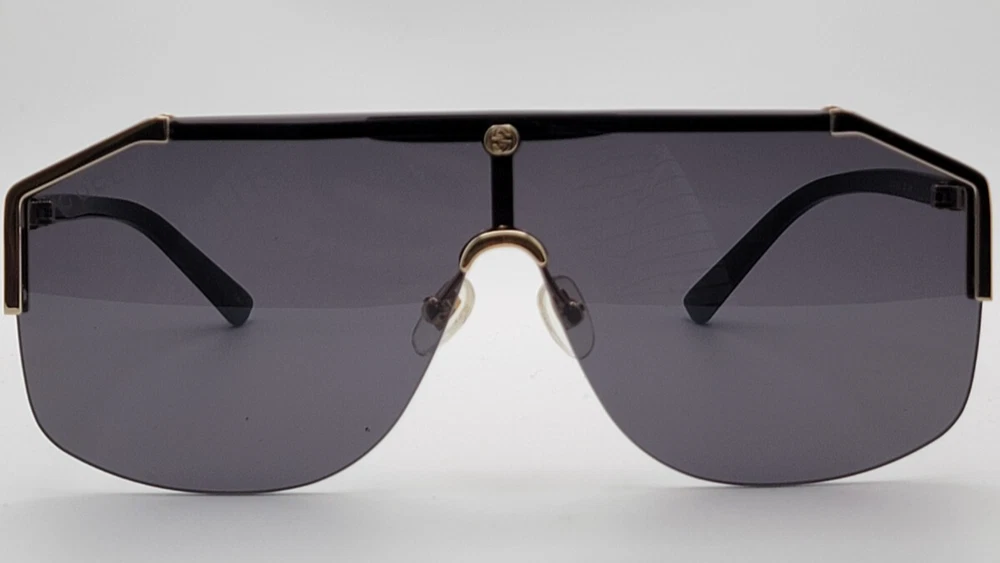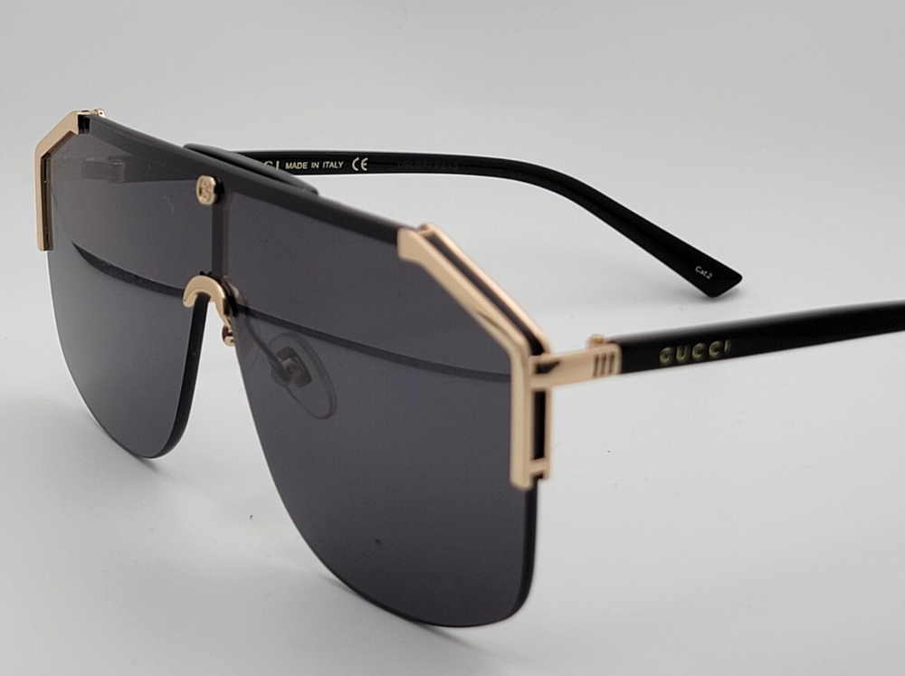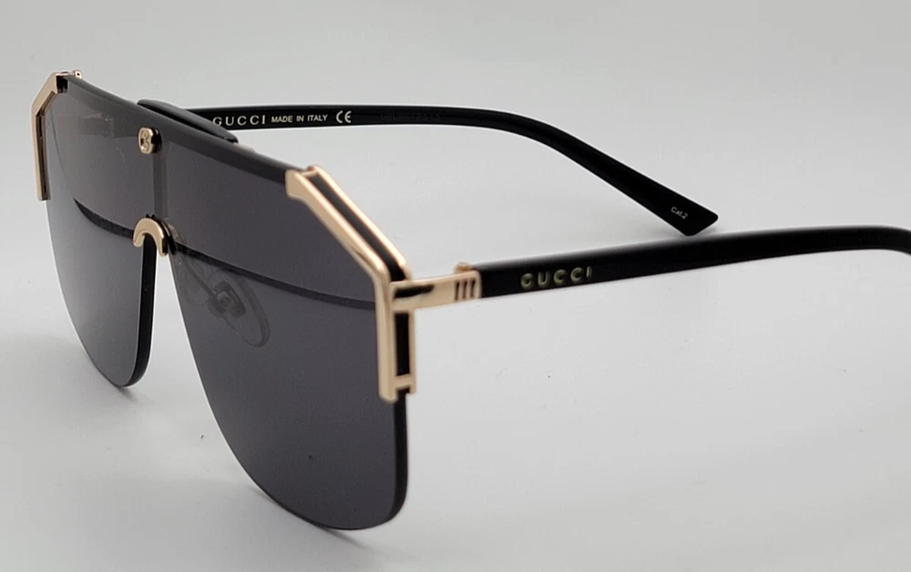 Gucci GG0291s Men's Sunglasses Shield Aviator Oversized Black Gold Metal Frame – Luxury Italian Craftsmanship Elevate your style with the Gucci GG0291S sunglasses, a bold statement piece that embodies sophistication and innovation. Designed for those who appreciate high-end fashion, these sunglasses feature a semi-rimless metal frame with a rectangle shape , offering a sleek and modern aesthetic. Key Features: Frame Material: Premium metal construction for durability and elegance. Frame Shape: Rectangle design, perfect for a refined and structured look. Lens Technology: High-quality lenses that provide superior UV protection. Size: 99-0-140 (XXL fit for a bold presence). Style: Casual yet luxurious, suitable for everyday wear or special occasions. Whether you're looking to enhance your eyewear collection or make a fashion statement, the Gucci GG0291S sunglasses deliver unparalleled craftsmanship and iconic design.