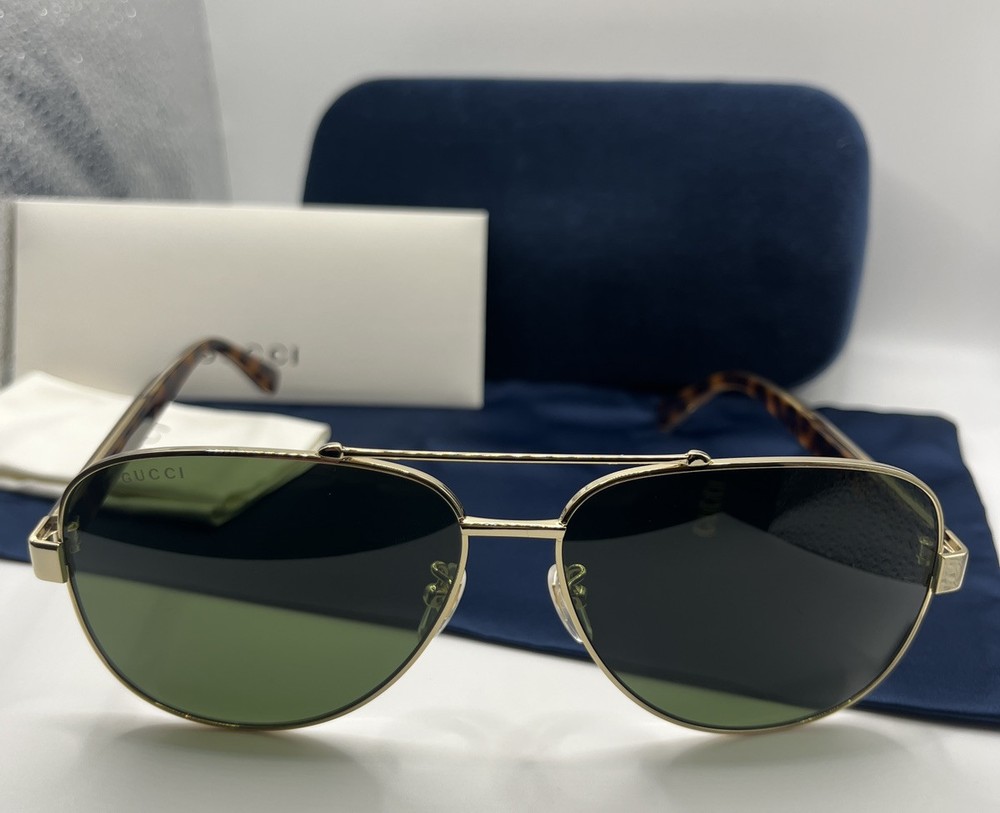 Gucci GG0528S 63/14/150mm Aviator Sunglasses with Gold/Havana Frame NEW Full Set. Condition is New with tags. Shipped with USPS Ground Advantage.