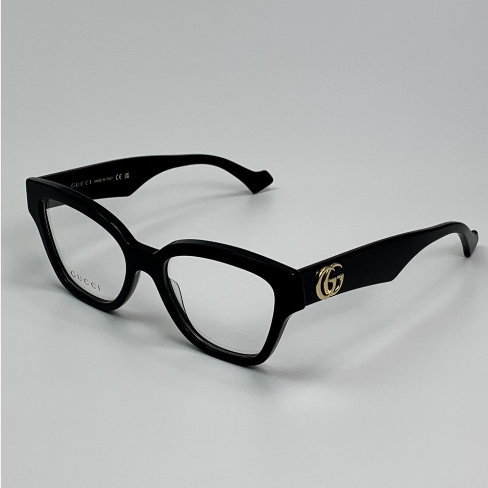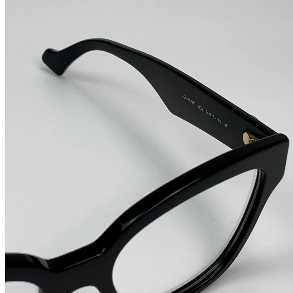Brand: Gucci Model: GG1424O Color Code: 005 Frame Material: Acetate, ensuring durability and a premium feel. Frame Shape: Geometric Cat-Eye, offering a feminine and elegant style. Frame Color: Black (Shiny Solid Black) Temple Design: Features the iconic Gucci lettering logo on the temples, adding a touch of luxury. Lens Width: 54 mm Bridge Width: 18 mm Temple Length: 145 mm Lens Height: 41 mm Total Frame Width: 133 mm Gender: Designed for women. Style: Classic cat-eye shape, suitable for various occasions. Fit: Medium fit, ideal for individuals seeking a comfortable yet stylish accessory. Includes: Gucci-branded protective case and a microfiber cleaning cloth. Made in Italy
