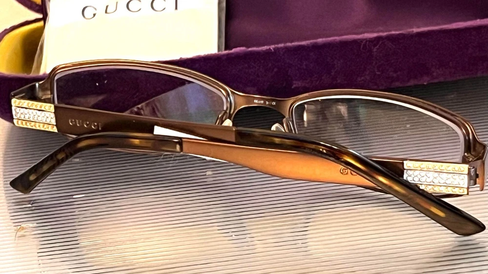 Gucci GG2769/Strass Eyeglasses Brown Frames Clear Lens 49-17 NEW IN B OX Authentic case & cloth include Original Price: $320 Color: Brown (COLOR AS 1ST PICTURE) Description Gucci is a famous brand worldwide. This company provides many fashion products including eyeglasses. And for those who love luxury and class, Gucci glasses are the perfect choice. Brand: Gucci Gender: Unisex Frame Color: Brown Frame Shape: Retangular Frame Material: Metal Lens Color: Clear Made in Italy Thinks you should know…. Everything we sell is 100% authentic. You can send it back for refund if you have any doubts. We do our best to describe the items as accurate as possible. We value your business and do our best to ensure your shopping experience is enjoyable. However, there are times we do make mistakes and ask that you contact us to resolve the issues prior to filing a claim or leaving negative feedback. We will work with you to resolve any issues in a timely manner. PAYMENT • Due to Ebay policy we accept PayPal payments only. • Please submit your PayPal payment within 7 day. Otherwise Ebay will automatically open an unpay case against you. COMBINE PAYMENT • Please let us know if you want to combine your orders and we will assist you if you are not familiar with this process. • We will combine all orders into one shipment if you pay them separately. • If you need more time to shop, pay for your items, or made a mistake just let us know and we will help you. RETURN POLICY If you have any question or concern, please contact us through My eBay Message. We will gladly accept all returns in its ORIGINAL condition. We want our customers to feel safe knowing they can return their item. If you are not happy with your item for any reason Once we receive your item back we will notify you and refund your item cost plus your original shipping fee, minus a 10% re-stocking fee from the total cost of the total value final fee + shipping. • We do not try to make money off of returns, but we have to cover cost, so we keep taking return in the future. We will not grant a refund if the following situation occurs: • The item is returned damaged. • If the item is washed. • If the item has a distinct odor such as cigarette smoke, detergent, perfume, etc.. • If item is missing any part. • If item appears to have been worn. • If the returned is over 14 days from the date the buyer received the item. These types of returned items will not qualify for a refund and it will be the buyer’s responsibility to pay for it to be returned to buyer. Please use first class mail service How long does it take to process returns? Returns are processed at the end of the business week for which the item was received. Once the return has been received and processed, you will receive confirmation via email that a refund has been issued to your original method of payment. Shipping We will ship to the address you have on file with Ebay. Please make sure your current address is updated to avoid delivery issues. We do combine shipping. Please make sure you combine your items before checkout. Item may be shipping from New York or California We ship out 6 days a week and we ship within 2 business days of receiving payment. We ship either First Class Mail, USPS Priority Mail. Contact Us If you ever have a question or a problem with your purchase, please contact us via Ebay message. We try to answer your questions in a timely manner, and we?ll do the best we can to resolve any issue Business Hours: Monday through Friday, 9:00 AM to 5:00 PM (PST) (Close on Saturday, Sunday, and Major Holidays.) All paid items on Friday after 5:00 PM and Saturday will be delivered on the following Monday. Track Page Views With Auctiva's Counter