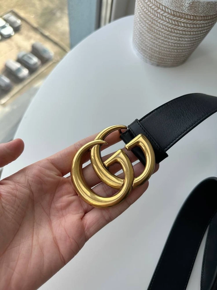 Elevate your wardrobe with the Gucci Gold Double GG Logo Metal Belt, a seamless blend of luxury and style. Tailored for the discerning gentleman, this belt is crafted in Italy and bears the hallmark of quality with its striking black check pattern and the iconic, bold GG logo accents. The belt is a regular size 32, ensuring a comfortable fit for everyday wear. Its versatile design complements a range of themes, from classic and sports to academic and professional, making it an essential accessory for any well-curated wardrobe. With its robust construction and timeless appeal, this piece is not just a belt, but a statement of sophistication.