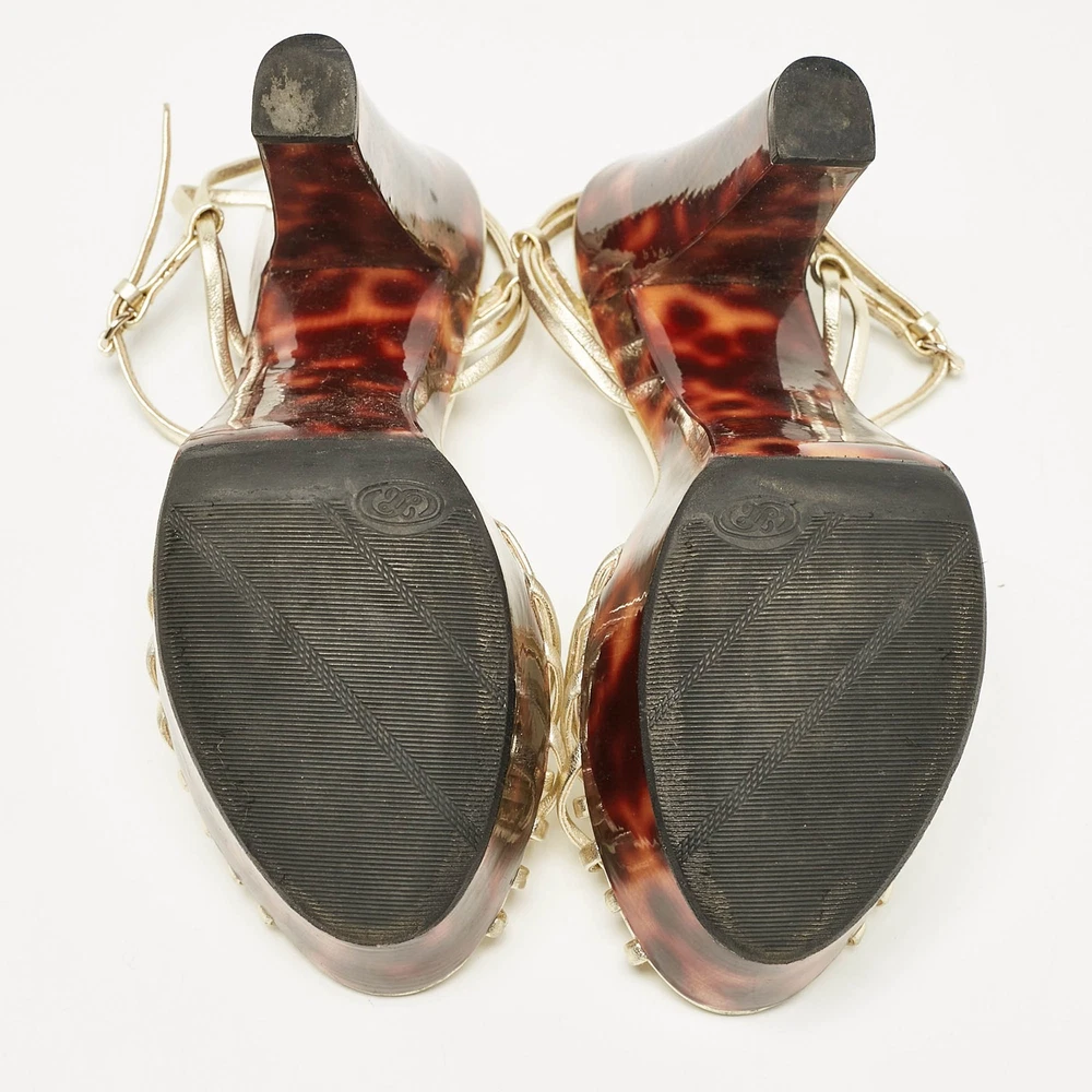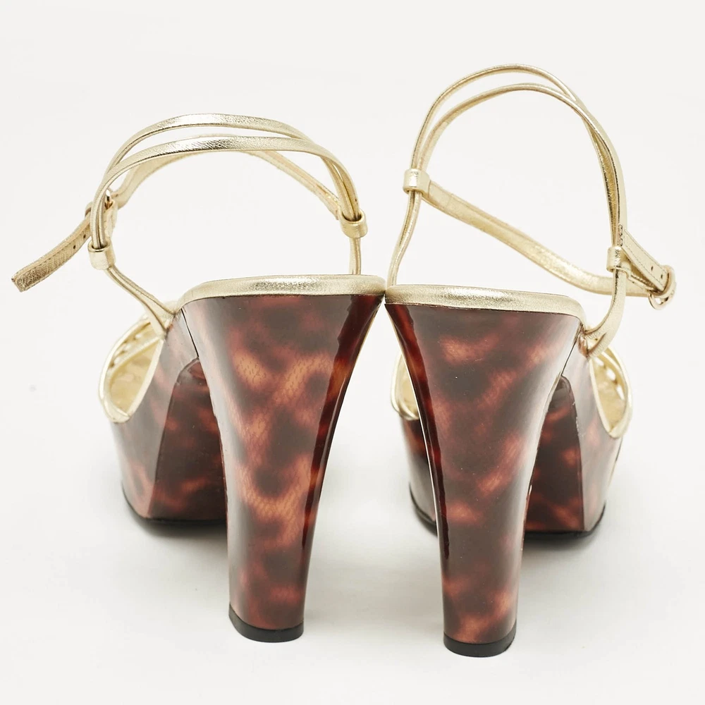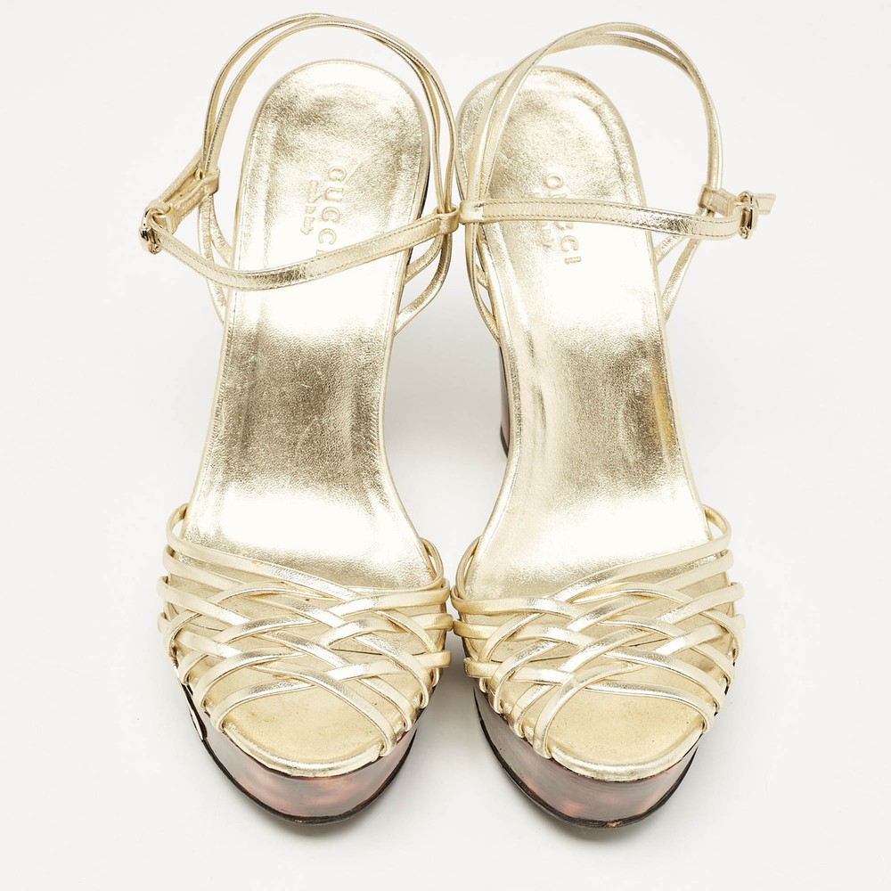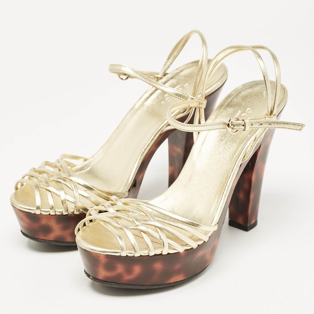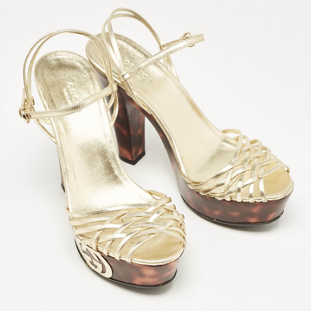 Gucci Gold Leather Platform Ankle Strap Sandals EU 38