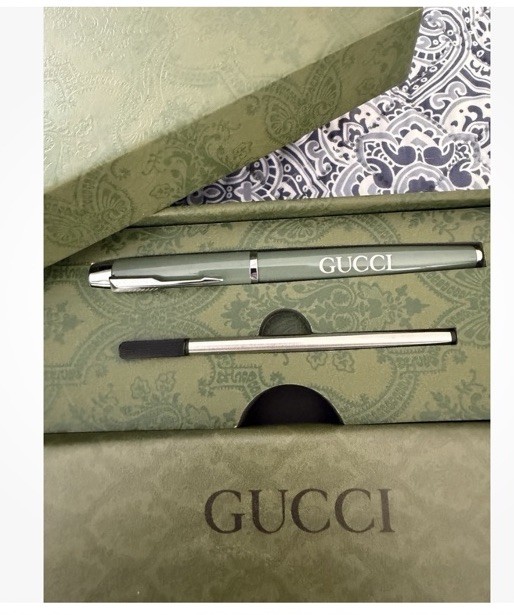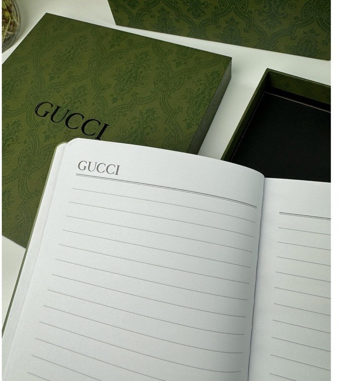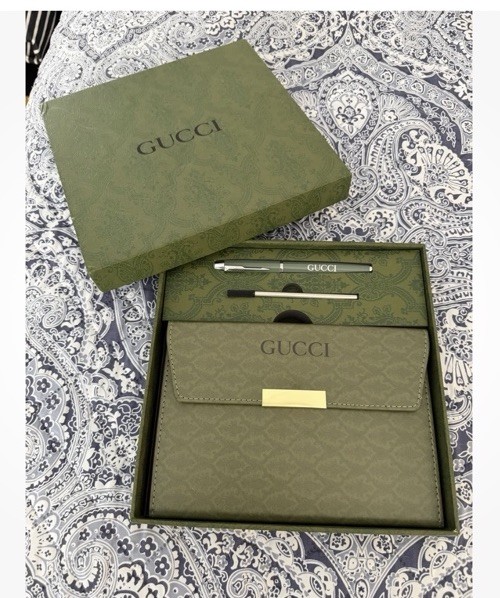 Includes: Notebook Ballpoint Pen Pen Refill The Gucci NIB Writing Set is a luxurious stationery item that includes high-quality paper notebook and writing instruments. This collectible set is perfect for those who appreciate fine craftsmanship and elegant design. With the iconic Gucci brand, this writing set is sure to impress with its refined aesthetic and attention to detail. Ideal for both personal use and as a stylish gift for someone special. This
