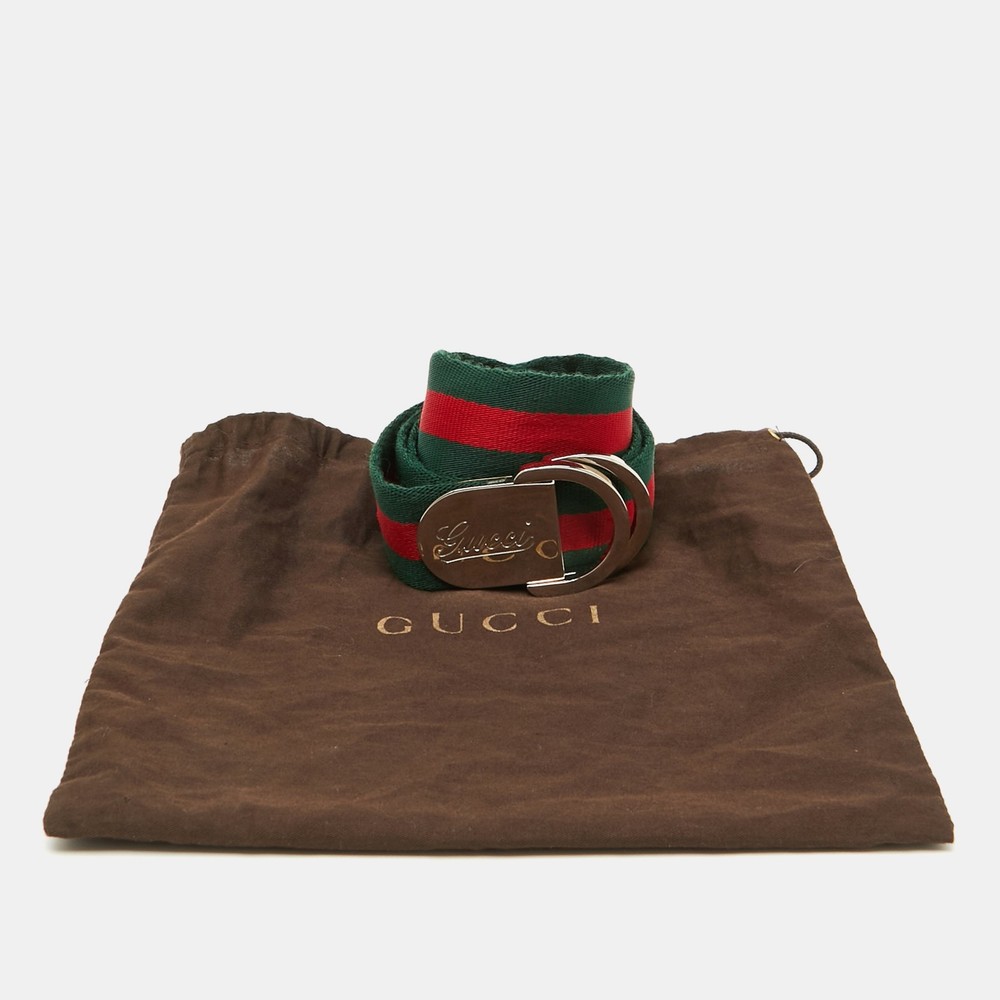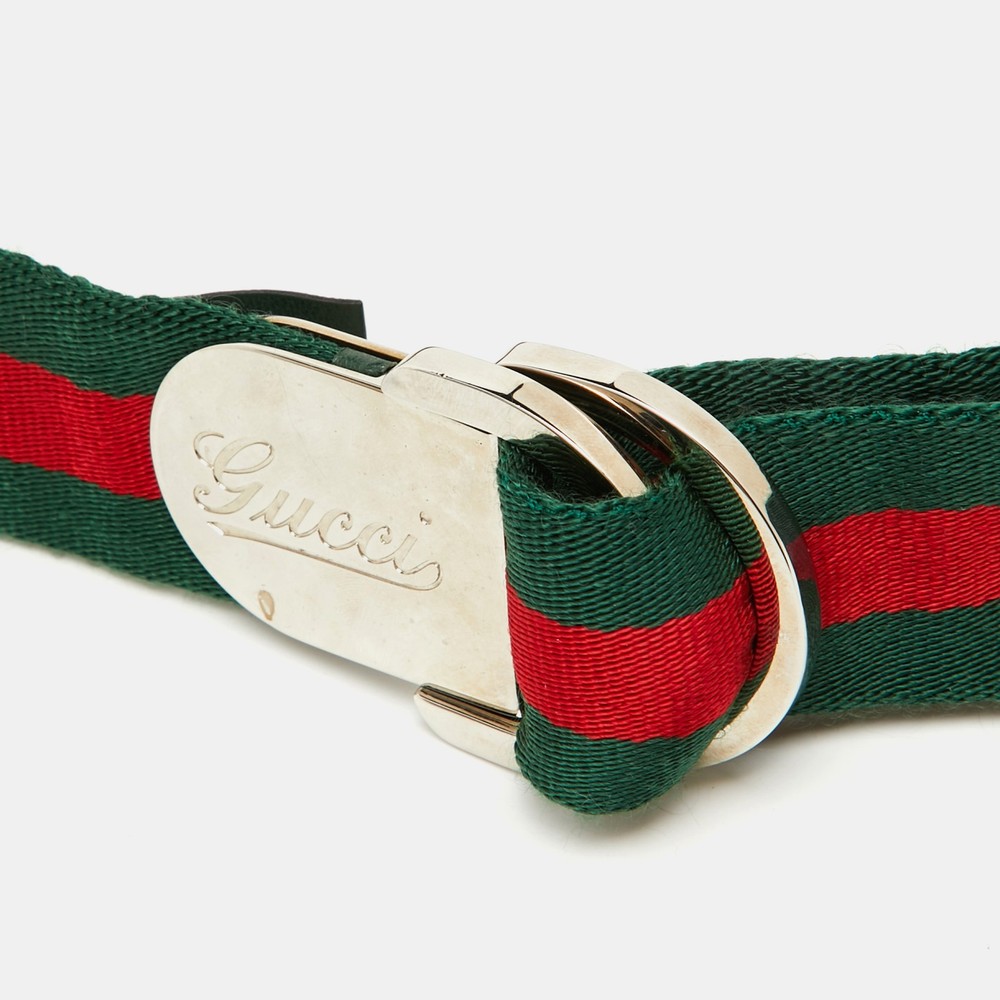 Elevate your ensemble with this exquisite belt from a renowned Italian fashion house. Crafted from fine fabric, its iconic green and red web pattern speaks to timeless elegance. Perfectly suited for women with a flair for sophistication, this accessory seamlessly marries classic design with modern artistry. The distinct buckle adds a touch of exclusivity, ensuring a seamless blend of luxe style and functionality. An impeccable addition to any fashion forward wardrobe, crafted with passion and precision.Certified by The Luxury Closet - This item has gone through a detailed authentication process overseen by our experts. We offer a lifetime guarantee of authenticity on all our items. Import duties, taxes and charges are not included in the item price. These charges are the buyers responsibility. Please check with your country’s customs office to determine what these additional cost will be prior to buying. Our eBay Store About Us Contact Us Add to Favorite Sellers Gucci Green/Red Fabric Web Buckle Belt 90CM $235.4 Elevate your ensemble with this exquisite belt from a renowned Italian fashion house. Crafted from fine fabric, its iconic green and red web pattern speaks to timeless elegance. Perfectly suited for women with a flair for sophistication, this accessory seamlessly marries classic design with modern artistry. The distinct buckle adds a touch of exclusivity, ensuring a seamless blend of luxe style and functionality. An impeccable addition to any fashion forward wardrobe, crafted with passion and precision. Product Details Brand Color Green Dimensions Width: 4 cm, Length: 90 cm Material Fabric Size M Outsole Width Outsole Length Heel Height Includes Original Dustbag Certified by The Luxury Closet This item has gone through a detailed authentication process overseen by our experts. We offer a lifetime guarantee of authenticity on all our items. How We Check The in-house team of experts at The Luxury Closet is highly trained to verify the authenticity and the condition of the luxury products. They ensure that only 100% authentic items are put on sale.The evaluation process is unique with its own mix of assessment criteria and differs according to the category. Each item is evaluated based on the following combination of hallmarks, hardware, stitching, symmetry, material, craftsmanship, stamping, codes, hologram stickers, and packaging. Our authenticators also check if the items have been modified or amended (e.g., aftermarket diamonds, replaced batteries, repaired bags, etc.) International Buyers Import duties, taxes and charges are not included in the item price. These charges are the buyers responsibility. Please check with your country’s customs office to determine what these additional cost will be prior to buying.