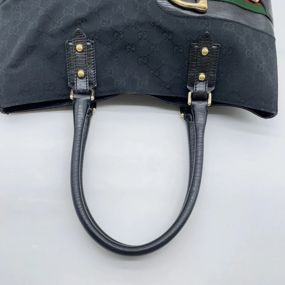 Gucci Horsebit GG Canvas x Leather Sherry Line Black Tote Bag ITEM DESCRIPTION ------------------------------ Brand: Gucci Style: Tote Bag Color: Black Material: Canvas x Leather Size (cm): W36 x H25 x D13 cm(Approx)/Handle Drop:20cm(Approx) Size (inch): W14.17" x H9.84" x D5.12"(Approx)/Handle Drop:7.87"(Approx) Pocket: Outside: 0 Pocket / Inside: 1 pocket Made in: Italy Serial Number: 137385 205141 Product Code: NS080637 ------------------------------ Accessories Dustbag ------------------------------ Outside: B+ Inside: B+ --------------Smell: ----------------- No noticeable odor (Please understand that varies by person) -----------Remarks: -------------------- Outer Surface Crease,little dirty Edge Rubs Outer pocket - Bag Leather Tiny dirty Hook button Works well Handle Rubs,little dirty,glazing Hardwares Slight color faded,scratches Zipper Works well Inner surface Small stain,little dirty Inner Pocket Tiny dirty Dust bag Include Major issue Outer Surface:Crease,little dirty Handle:Rubs,little dirty,glazing S New A Almost new AB Little used. Very good Condition AB- Little used. Good Condition. Tiny scratches or dirt B+ Signs of usage. Little scratches and dirt B Used with noticeable scratches or dirts D Damage, peeling or sticky - Shipping policy 1. We ship exclusively to the address registered on your eBay account, using FedEx or DHL as our primary carriers. Please verify that your shipping information is accurate prior to completing your payment. 2. Orders are processed and dispatched within 24 hours after payment is received. (Excluding Public Holiday) 3.Delivery times are estimated between 5 to 30 days, depending on the destination country. Actual delivery may occur sooner. 4. Any applicable import duties, taxes, or customs clearance fees will be the responsibility of the buyer upon the package’s arrival in the destination country. 5. A signature will be required upon delivery to ensure secure receipt of the package. - Return Policy 1. To qualify for a refund, items must be returned within 30 calendar days from the date of purchase. 2. Returned items must be in their original condition, without any signs of damage or wear. 3. After we received your item, our team will inspect it and process your refund. 4. Upon receipt and inspection of the returned item, we will initiate a refund to the same PayPal account or credit card used for the initial transaction. 5. If the item is damaged or if the return is initiated beyond the 30-day window, a refund will not be issued. - Information If anything is unclear and/or you have more question feel free to message us! We will get back to you as soon as we can! Our products were purchased from reliable and licensed stores and markets here in Japan so we guarantee 100% authenticity. IMPORTANT: Please check the detailed photos and read the description thoroughly before bidding and making the payment. NOTICE: Please expect your item as Used or Pre-owned Please let us know before leaving us a negative feedback. Message us if you have other inquiries.