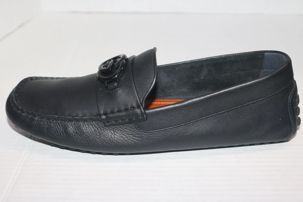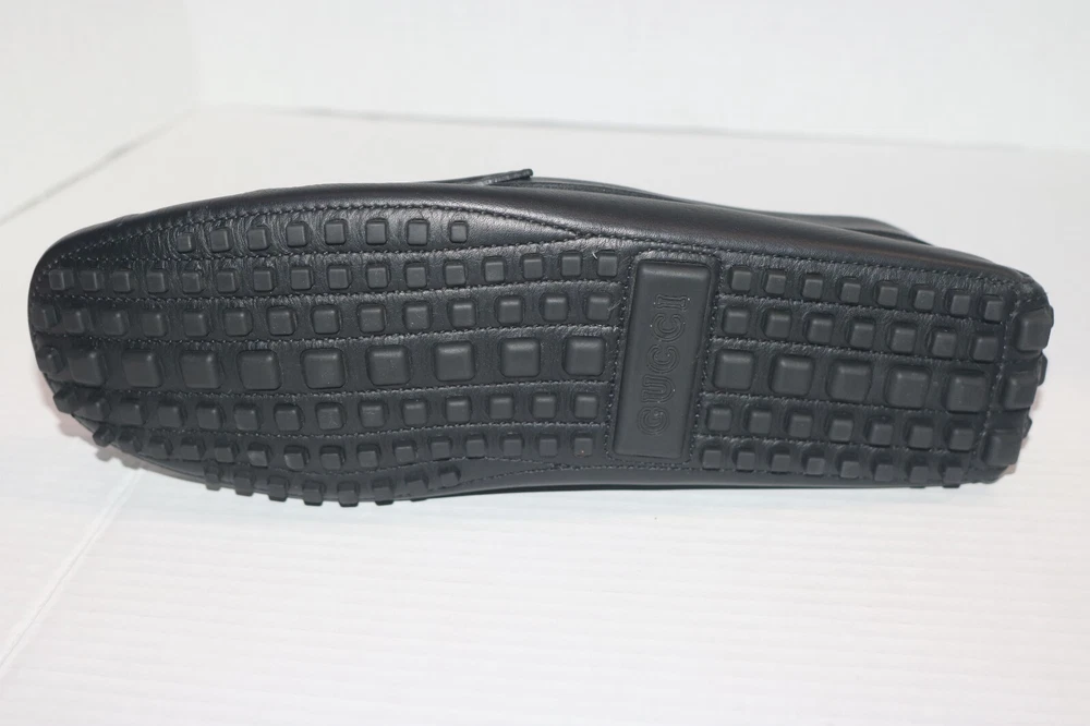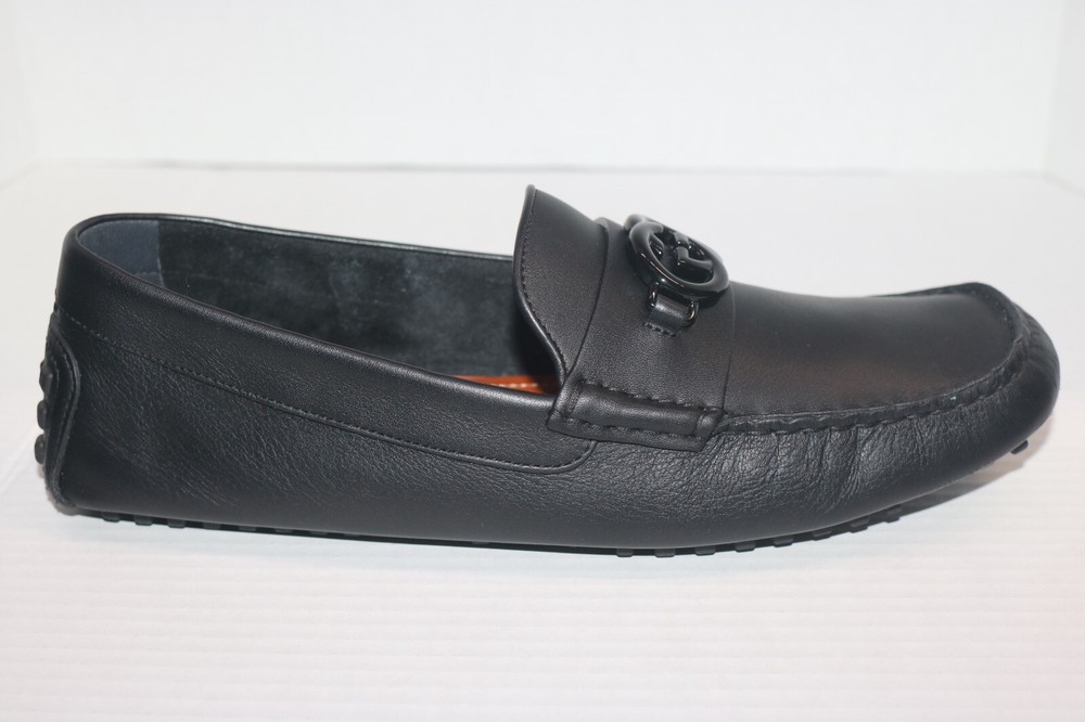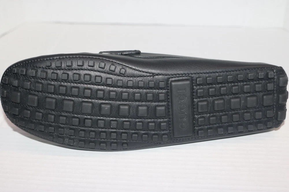 Gucci 692379 Interlocking G Driver Loafers Black Size 11.5 Black calfskin leather Interlocking G Buckle Rubber driver soles Tan leather insole Made in Italy Size 11.5 = 12 US MENS