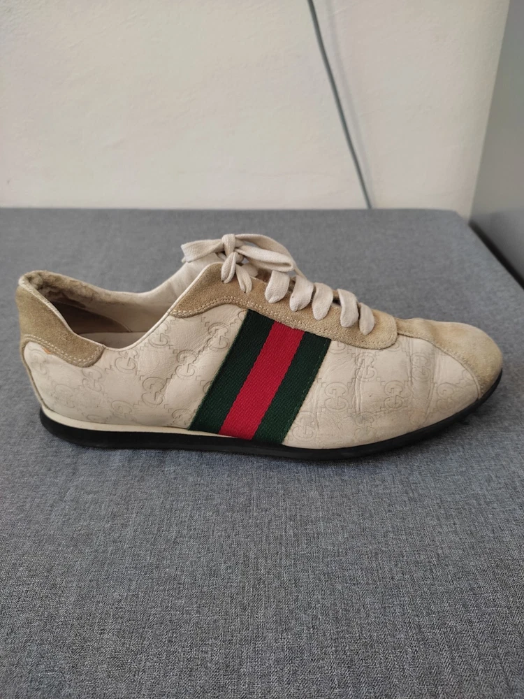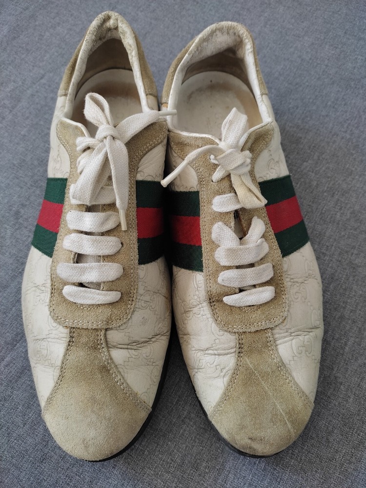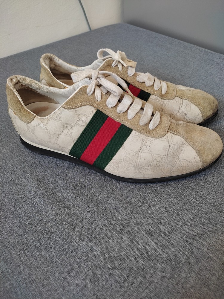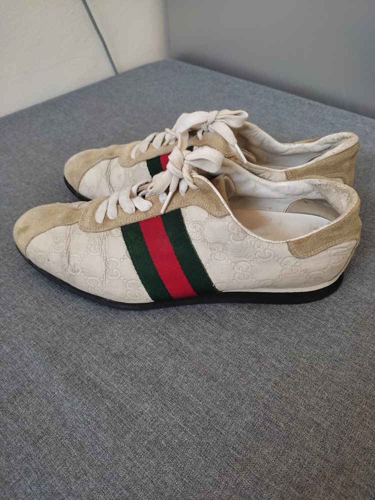 WELCOM Gucci men's Shoes ivory Cream Leather Sneakers Web GG Monogram Men Sz 7.5 US Sz 7.5 US I try to be as honest as possible in my descriptions and will give full details of any faults that I find on the item With Pre-loved items, customers must accept that items will not be like new and may have some small marks, Colour fading or some pulls that may have happened with wear. We want customers to be aware of this when purchasing. 7.5 Us ....40 41 Eu Please refer to pictures, FOR condition. We will gladly answer your questions prior making a purchase Please SEE the PICTURES AND size before buying shipping and handling 1. We ship to your eBay address Please make sure your eBay address is correct before you pay; 2. We ship within 2 business days after full payment is received and cleared. I do ship world wide by registered mail withe traking number Shipping time takes up to : =EXPEDITED 4/8 BUSINESS DAYS 65 $ ) recommend it) =Standard 11/25 BUSINESS DAYS 55 $ =ECONOMIC 25/35 BUSINESS DAYS 35 $ . + NOT RESPONSIBLE FOR CUSTOMS DUTIES ; taxes ;fees or delays. Disclaimer the logo /picture is tradmark of their respective companies.this product is not licensed ,sponsored ,endorsed or manufactured by this company . all import duties/taxes are the bayer’s responsibility.we are not responsibility for any import duties/taxes,or customs costs.all products price is not including import duties/taxes ,you have to consult you local customs for more information about import duties/taxes return policy We are committed to give you the best customer service possible. If for any reason you are dissatisfied with a purchase, please contact us and we'll assist you with a prompt solution. We'd like to settle any problem in a friendly manner. feedback and contact 1- Our goal is to make sure you are a happy buyer and have a pleasant shopping with us. If you are happy with our item and service, please do leave us positive feedback and 5 star rate. 2- We understand the concerns and frustrations you might have, and will do our endeavor to resolve the issues. 3- Please give us the opportunity to resolve any problem. We thank you for your effort to make this sale and purchase experience a happy one!