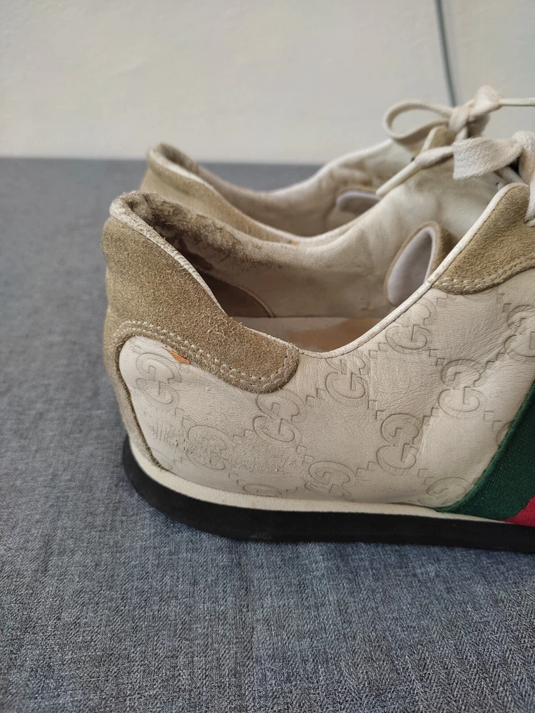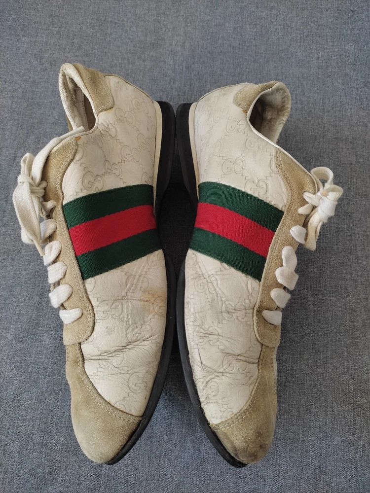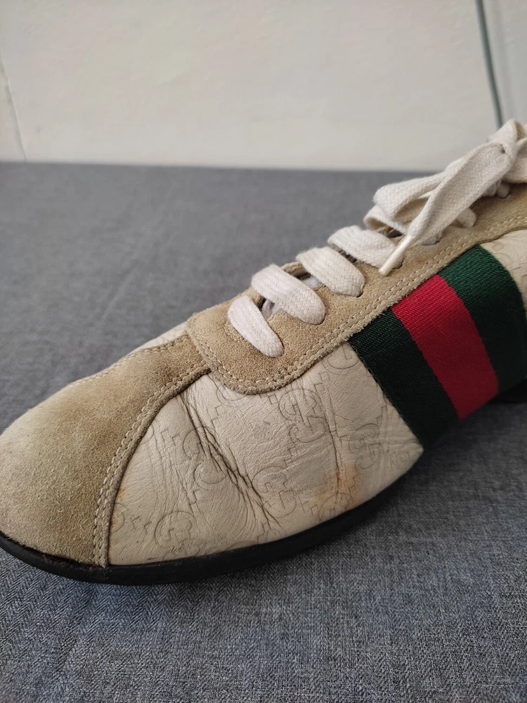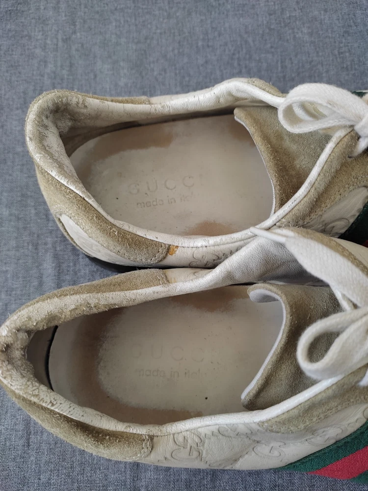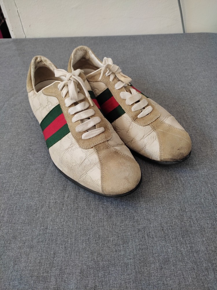 WELCOM Gucci men's Shoes ivory Cream Leather Sneakers Web GG Monogram Men Sz 7.5 US Sz 7.5 US I try to be as honest as possible in my descriptions and will give full details of any faults that I find on the item With Pre-loved items, customers must accept that items will not be like new and may have some small marks, Colour fading or some pulls that may have happened with wear. We want customers to be aware of this when purchasing. 7.5 Us ....40 41 Eu Please refer to pictures, FOR condition. We will gladly answer your questions prior making a purchase Please SEE the PICTURES AND size before buying shipping and handling 1. We ship to your eBay address Please make sure your eBay address is correct before you pay; 2. We ship within 2 business days after full payment is received and cleared. I do ship world wide by registered mail withe traking number Shipping time takes up to : =EXPEDITED 4/8 BUSINESS DAYS 65 $ ) recommend it) =Standard 11/25 BUSINESS DAYS 55 $ =ECONOMIC 25/35 BUSINESS DAYS 35 $ . + NOT RESPONSIBLE FOR CUSTOMS DUTIES ; taxes ;fees or delays. Disclaimer the logo /picture is tradmark of their respective companies.this product is not licensed ,sponsored ,endorsed or manufactured by this company . all import duties/taxes are the bayer’s responsibility.we are not responsibility for any import duties/taxes,or customs costs.all products price is not including import duties/taxes ,you have to consult you local customs for more information about import duties/taxes return policy We are committed to give you the best customer service possible. If for any reason you are dissatisfied with a purchase, please contact us and we'll assist you with a prompt solution. We'd like to settle any problem in a friendly manner. feedback and contact 1- Our goal is to make sure you are a happy buyer and have a pleasant shopping with us. If you are happy with our item and service, please do leave us positive feedback and 5 star rate. 2- We understand the concerns and frustrations you might have, and will do our endeavor to resolve the issues. 3- Please give us the opportunity to resolve any problem. We thank you for your effort to make this sale and purchase experience a happy one!