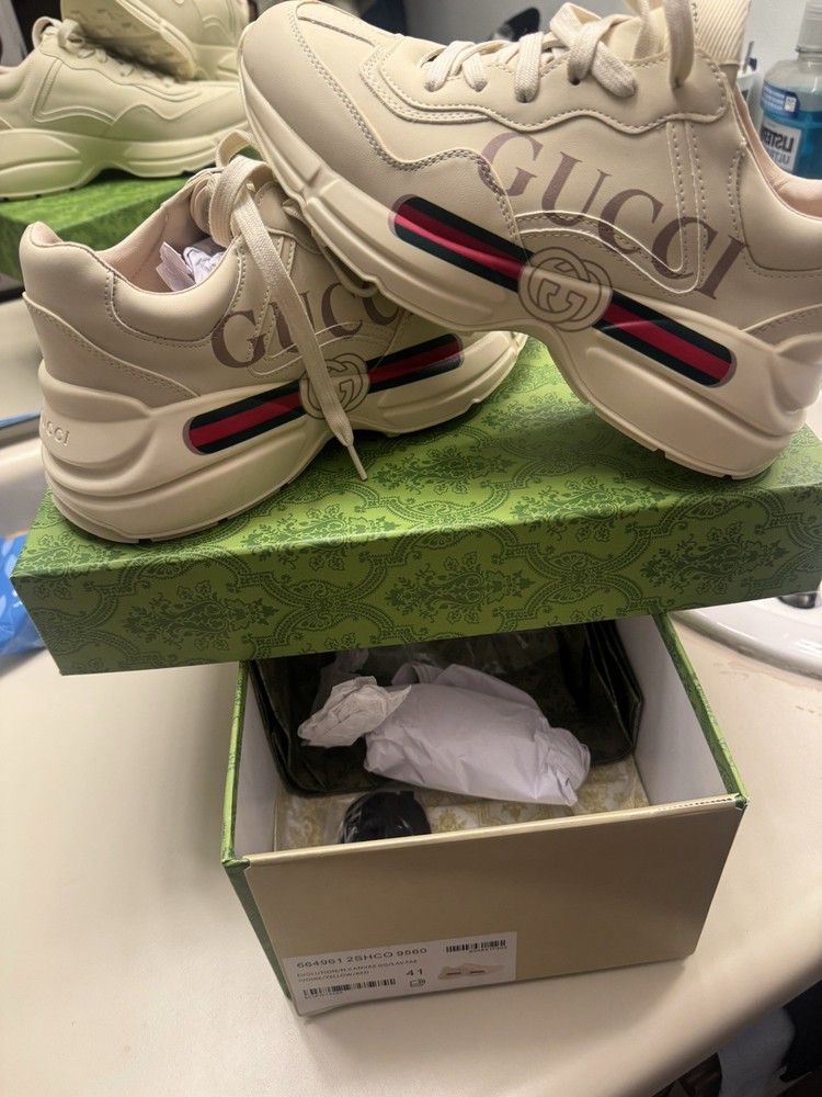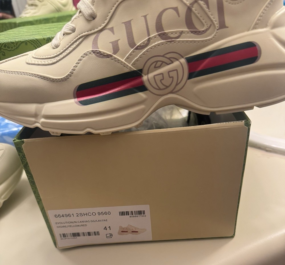 Gucci Ivory Red Green Lace Up Low Top Athletic Sneakers Men 664961 2SHCO 9560