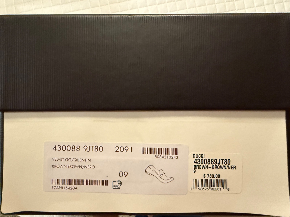 The Gucci Jordaan GG Loafers are classical dress shoes designed for men. Featuring a slip-on closure and brown velvet upper material with the iconic Pattern GG, these loafers exude luxury and sophistication. Made in Italy, the leather lining and insole provide added comfort and quality. With the Gucci logo accents, these loafers are a stylish and timeless addition to any man's wardrobe, perfect for fall and spring seasons. Original Price: $730.00