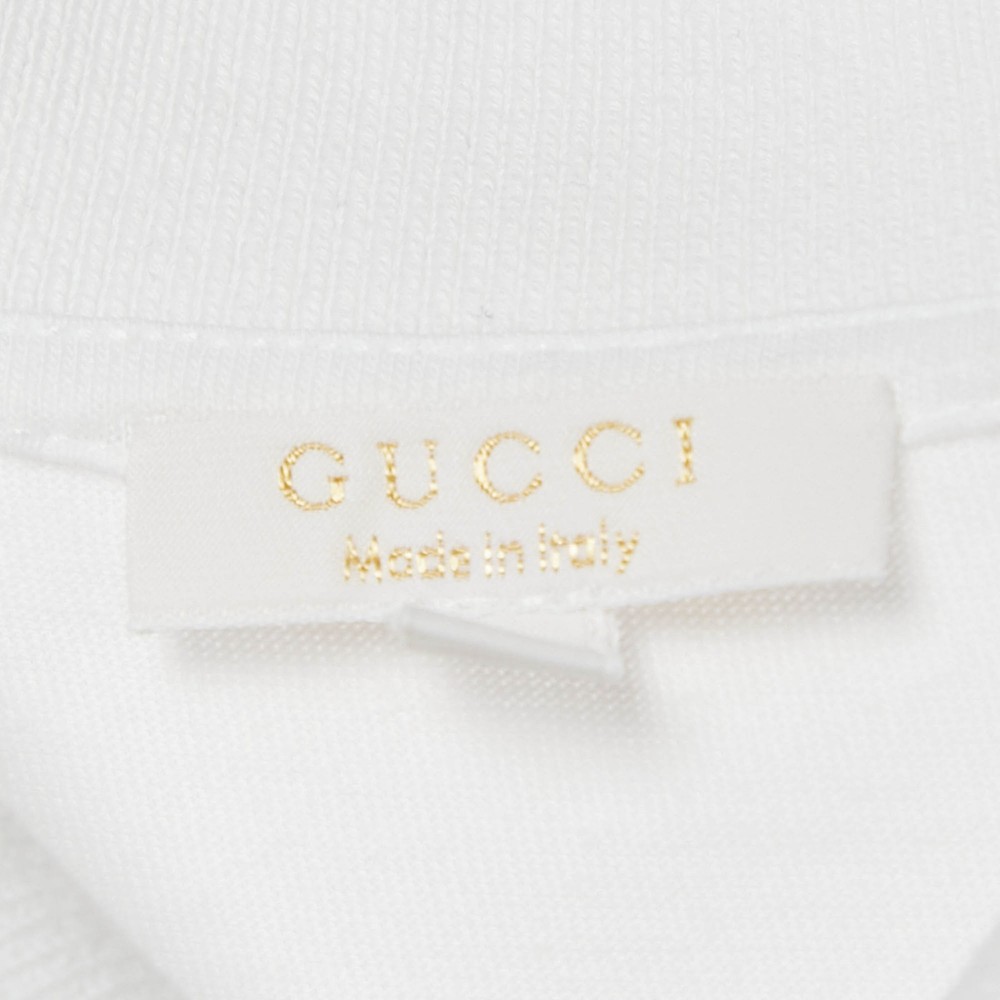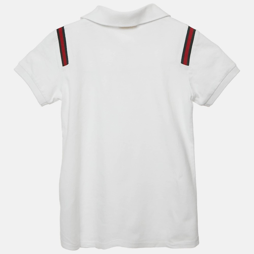 Gucci reimagines a classic with this white jersey polo, accented by the signature green and red Web collar. A stylish staple for young trendsetters who appreciate subtle luxury.Certified by The Luxury Closet - This item has gone through a detailed authentication process overseen by our experts. We offer a lifetime guarantee of authenticity on all our items. Import duties, taxes and charges are not included in the item price. These charges are the buyers responsibility. Please check with your country’s customs office to determine what these additional cost will be prior to buying. Our eBay Store About Us Contact Us Add to Favorite Sellers Gucci Kids White Web Collar Jersey Polo T-Shirt 6 Yrs $152.9 Gucci reimagines a classic with this white jersey polo, accented by the signature green and red Web collar. A stylish staple for young trendsetters who appreciate subtle luxury. Product Details Brand Color White Dimensions Material Size 6-7 Yrs Outsole Width Outsole Length Heel Height Includes Certified by The Luxury Closet This item has gone through a detailed authentication process overseen by our experts. We offer a lifetime guarantee of authenticity on all our items. How We Check The in-house team of experts at The Luxury Closet is highly trained to verify the authenticity and the condition of the luxury products. They ensure that only 100% authentic items are put on sale.The evaluation process is unique with its own mix of assessment criteria and differs according to the category. Each item is evaluated based on the following combination of hallmarks, hardware, stitching, symmetry, material, craftsmanship, stamping, codes, hologram stickers, and packaging. Our authenticators also check if the items have been modified or amended (e.g., aftermarket diamonds, replaced batteries, repaired bags, etc.) International Buyers Import duties, taxes and charges are not included in the item price. These charges are the buyers responsibility. Please check with your country’s customs office to determine what these additional cost will be prior to buying.