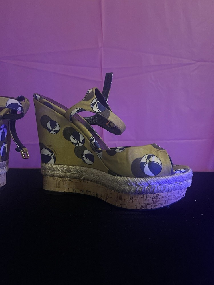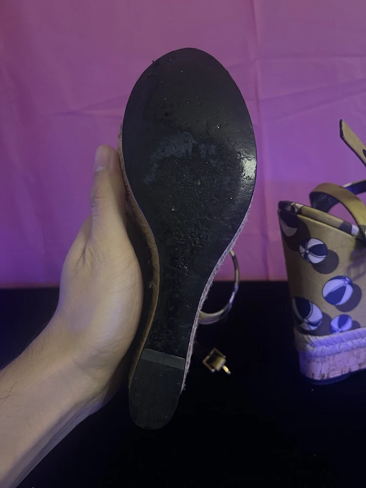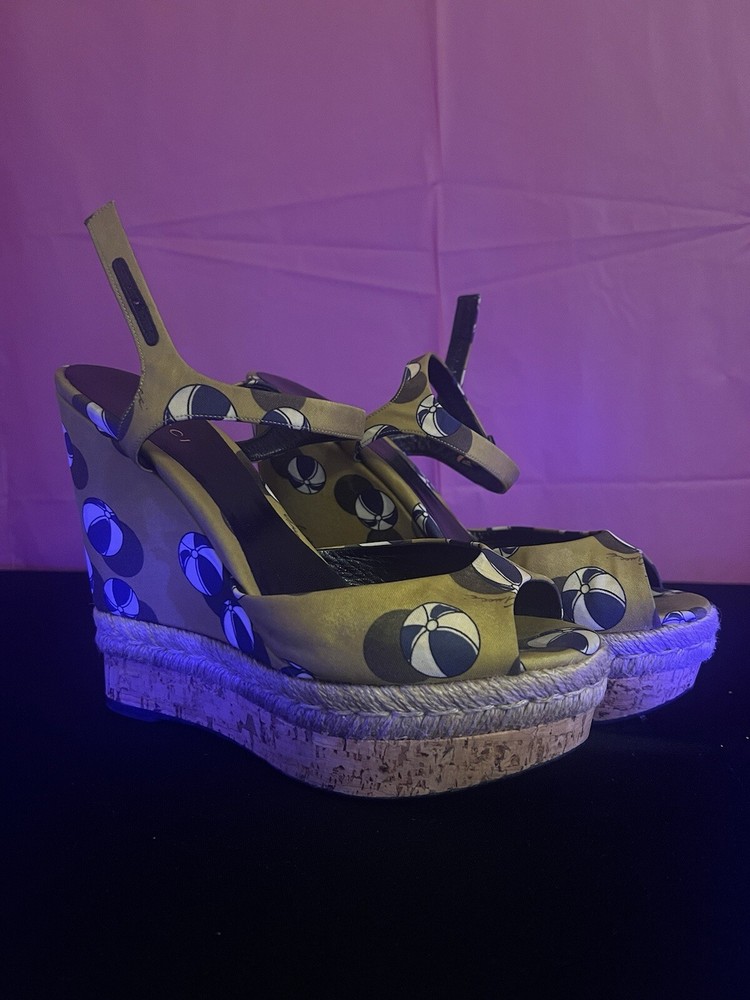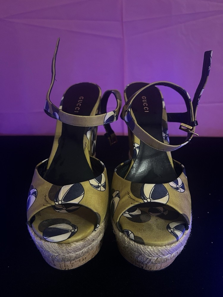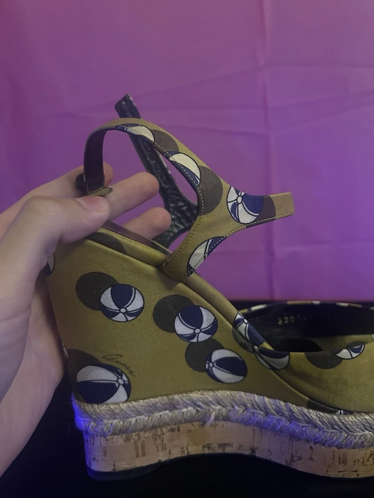 Gucci Leather Wedge Espadrilles Sandals Womens Size 9 Platform Beach Heels