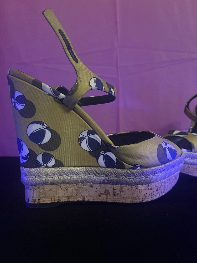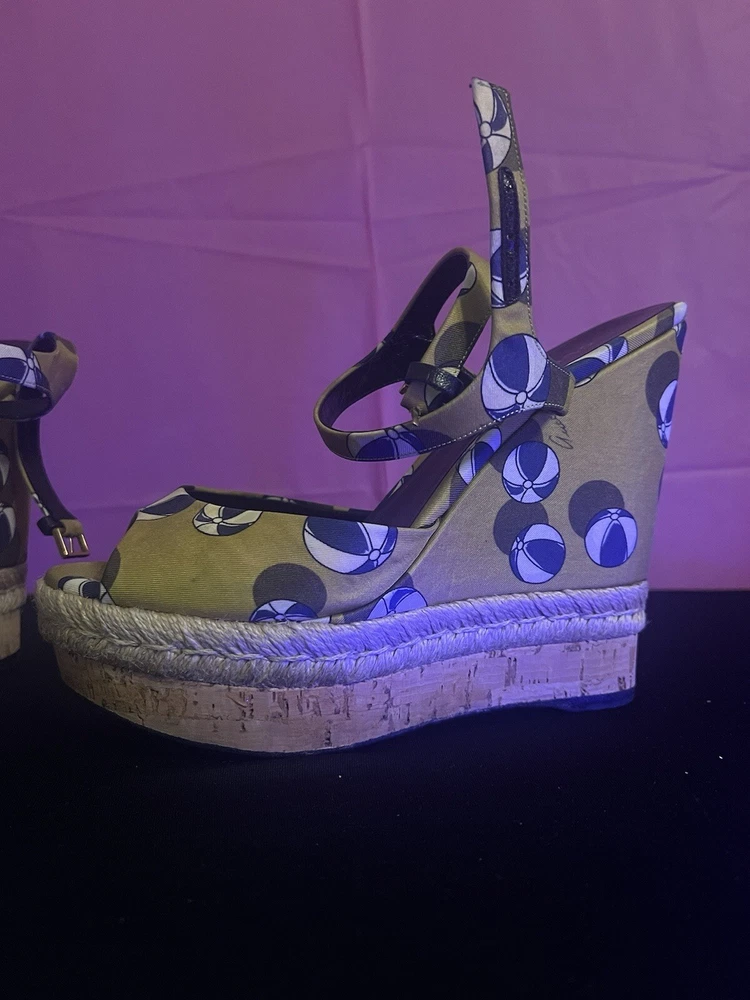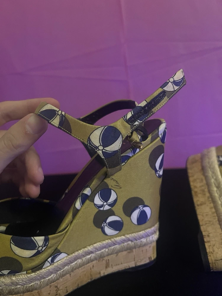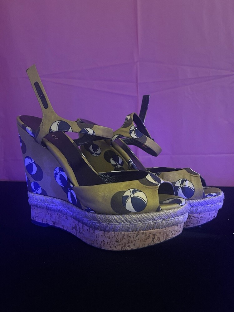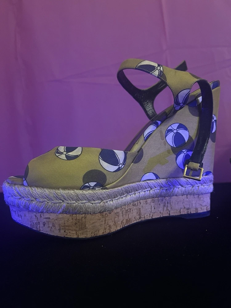 Gucci Leather Wedge Espadrilles Sandals Womens Size 9 Platform Beach Heels