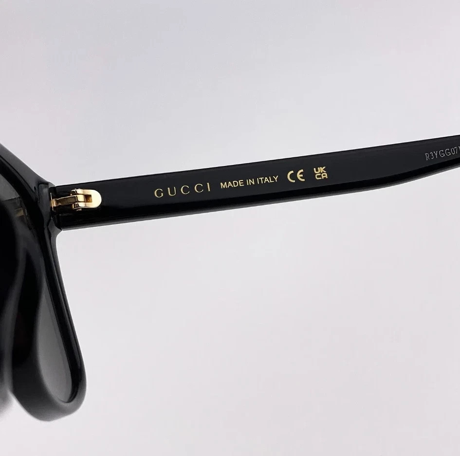 Discover the Gucci GG0637SK 001 —a sleek pair of men’s square sunglasses in black with grey lenses , blending timeless design and modern edge. Brand new and 100% Authentic . Crafted with premium acetate, these sunglasses deliver comfort, durability, and superior UV protection—true to Gucci’s iconic craftsmanship. A bold everyday essential, the GG0637SK 001 elevates both casual and refined looks with understated luxury and classic Gucci styling. DETAILS Designer: Gucci Model: GG0637SK 001 Color Code: 001 (Black / Grey Lens) Frame Shape: Square / Full Rim Lens Width: 55mm Bridge Width: 18mm Temple Length: 145mm Material: Premium acetate Fit: Men’s Lens: Grey; 100% UV protection Made in: Italy Condition: New Authenticity: 100% Authentic Gucci Why You’ll Love Them ▾ Bold square black frame with refined Gucci sophistication Grey lenses offer clear vision and full UV protection Durable acetate construction ensures lasting comfort Modern silhouette suits a variety of face shapes Subtle Gucci detailing for an unmistakably premium finish