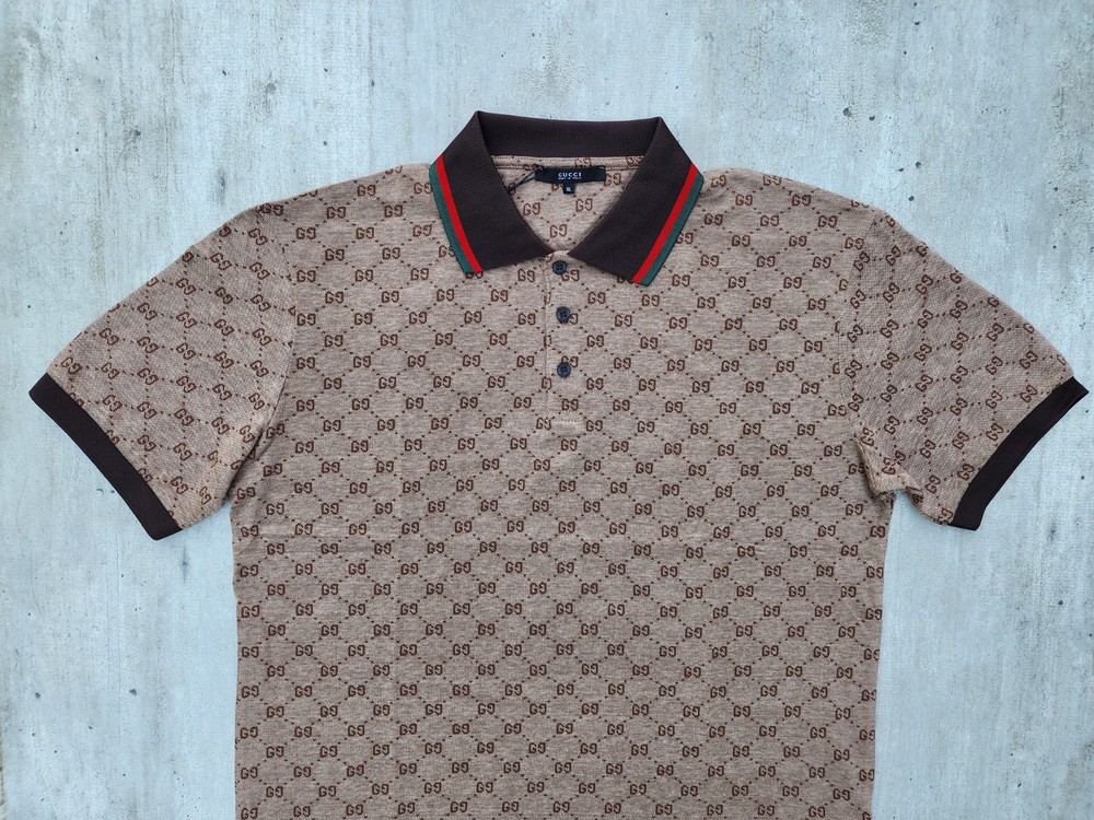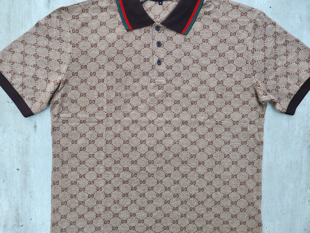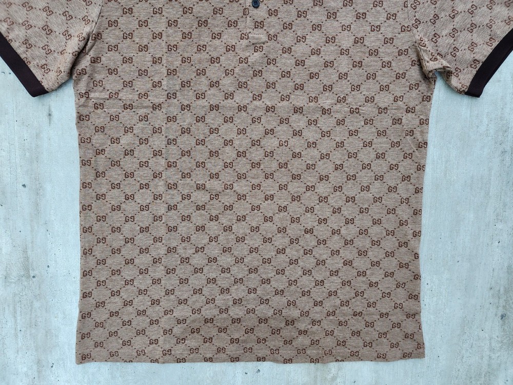 Polo Shirt Men's Gucci Regular Fit Excellent condition not have defect cotton button closure spread gg Classic polo Color Brown Tags inside outside Size XL Chest 59 Cm Length 80 Cm
