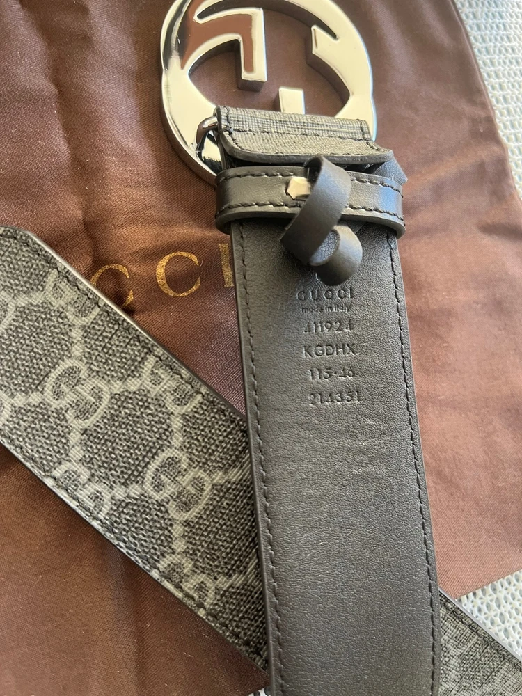 Gucci Men's GG Monogram Supreme Black/Gray Leather Belt Size 115cm, 40-42 waist, in Excellent Condition like NEW, Comes with BOX & DUST BAG.
