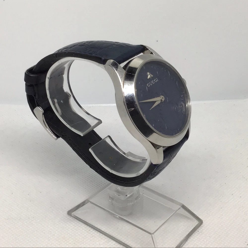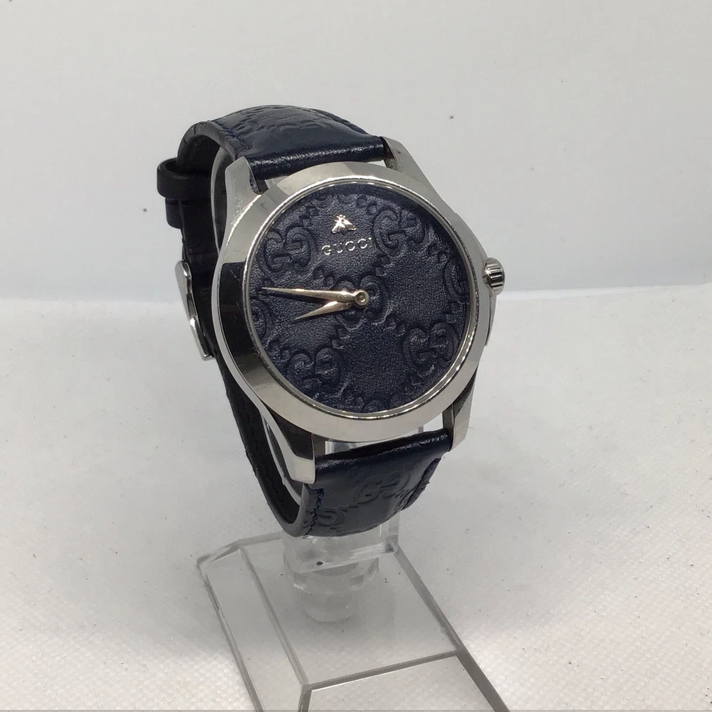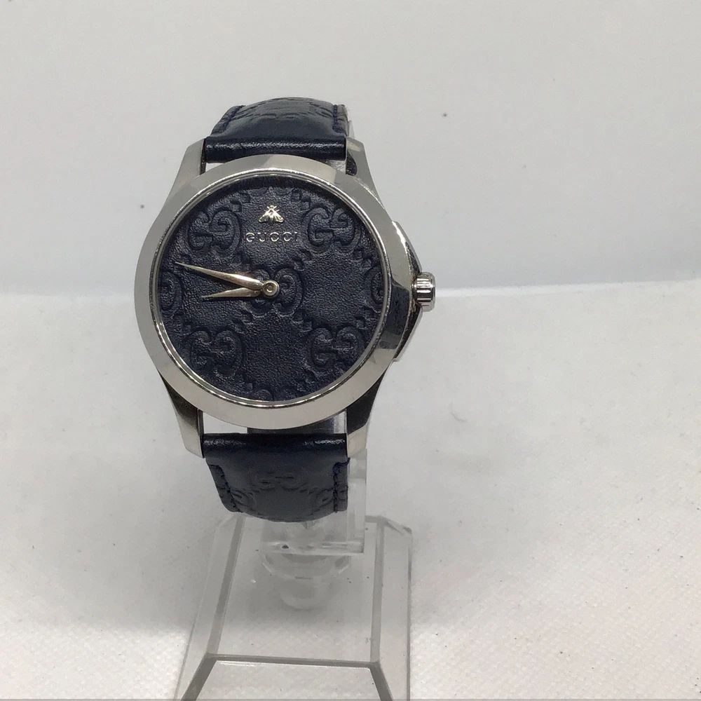 Condition: Pre-owned Description: A Modern Classic with Timeless Style Elevate your wrist with this authentic Gucci G-Timeless men's watch, a perfect blend of high fashion and Swiss craftsmanship. This timepiece features a classic stainless steel case and a sophisticated blue dial that often showcases Gucci's iconic motifs, such as the bee or star. The watch is presented on a comfortable and stylish blue leather strap, providing a pop of color and a luxurious feel. Whether powered by a precise Swiss quartz or an automatic movement, this watch is designed to offer both impeccable style and reliable timekeeping. It is a bold statement piece perfect for both casual and dressy occasions. This pre-owned watch is in good, working condition and is a great value for those seeking a stylish and dependable timepiece from a respected brand. Please see the detailed photos for an accurate representation of its current state. Key Features & Specifications: • Brand: Gucci • Model: G-Timeless • Case Material: Stainless Steel • Case Dimensions: Approximately 40mm diameter • Dial: Blue with signature Gucci motifs • Crystal: Scratch-Resistant Sapphire • Movement: Swiss Quartz or Automatic (please check photos of the case back) • Band: Blue Leather Strap • Water Resistance: 50m (5 ATM), suitable for splashes and light rain. • Condition: Pre-owned, with minor signs of wear consistent with a used item. No original box or papers included. The watch is fully functional and a new battery has been installed (if applicable) to ensure it is ready to wear. Important Notes for Buyers: • Visual Condition is Key: This is a pre-owned item. Please examine all the provided high-resolution photos carefully to assess the watch's condition for yourself. The pictures are an integral part of the listing description. • What's Included: This listing is for the watch only. It does not come with its original box or papers. • Shipping & Handling: Your purchase will be shipped with care. Please allow for a 3-day handling period. • Returns: We offer a 2-week return period for this item. The watch must be returned in the same condition it was received. Buyer is responsible for return shipping costs unless the item is not as described.