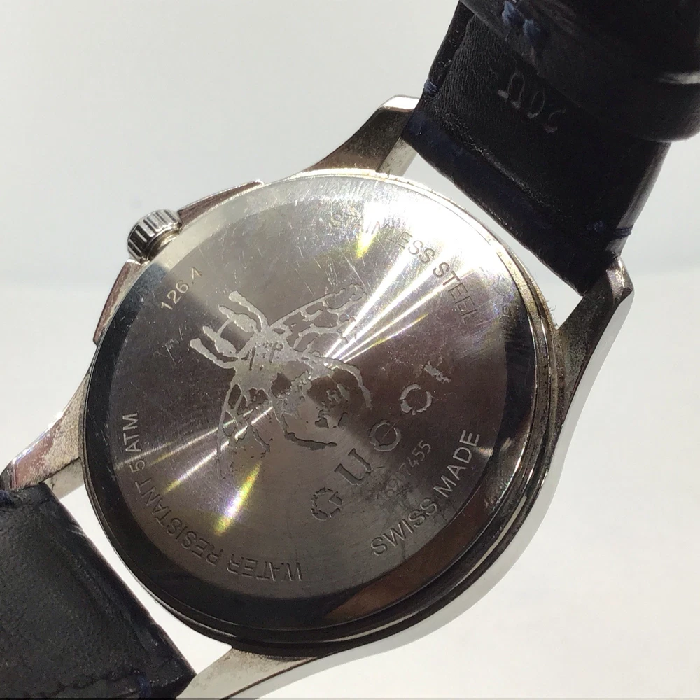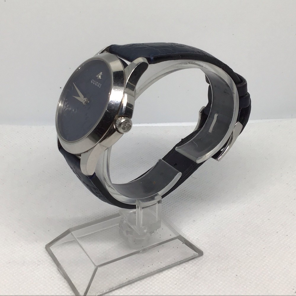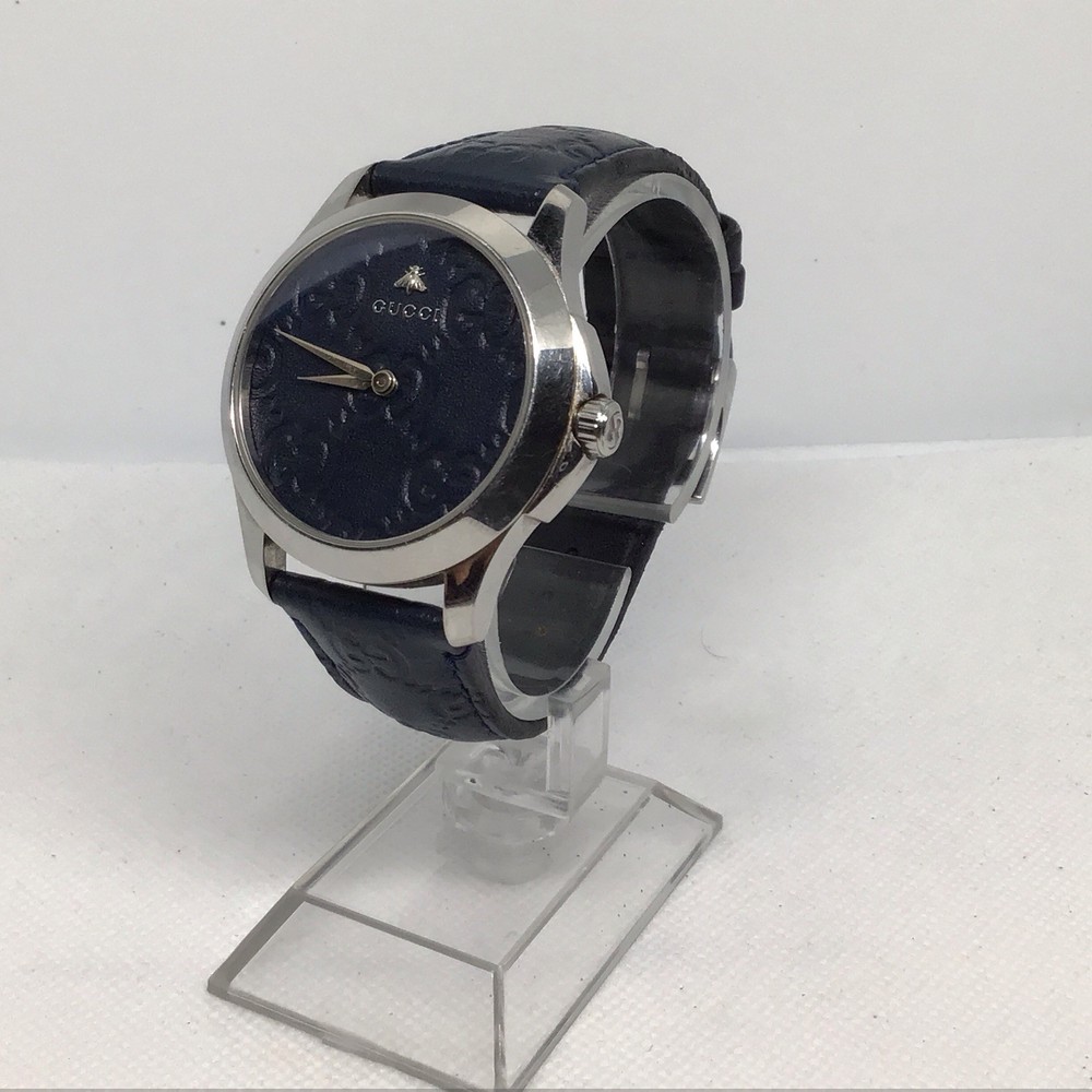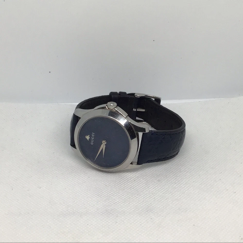 Condition: Pre-owned Description: A Modern Classic with Timeless Style Elevate your wrist with this authentic Gucci G-Timeless men's watch, a perfect blend of high fashion and Swiss craftsmanship. This timepiece features a classic stainless steel case and a sophisticated blue dial that often showcases Gucci's iconic motifs, such as the bee or star. The watch is presented on a comfortable and stylish blue leather strap, providing a pop of color and a luxurious feel. Whether powered by a precise Swiss quartz or an automatic movement, this watch is designed to offer both impeccable style and reliable timekeeping. It is a bold statement piece perfect for both casual and dressy occasions. This pre-owned watch is in good, working condition and is a great value for those seeking a stylish and dependable timepiece from a respected brand. Please see the detailed photos for an accurate representation of its current state. Key Features & Specifications: • Brand: Gucci • Model: G-Timeless • Case Material: Stainless Steel • Case Dimensions: Approximately 40mm diameter • Dial: Blue with signature Gucci motifs • Crystal: Scratch-Resistant Sapphire • Movement: Swiss Quartz or Automatic (please check photos of the case back) • Band: Blue Leather Strap • Water Resistance: 50m (5 ATM), suitable for splashes and light rain. • Condition: Pre-owned, with minor signs of wear consistent with a used item. No original box or papers included. The watch is fully functional and a new battery has been installed (if applicable) to ensure it is ready to wear. Important Notes for Buyers: • Visual Condition is Key: This is a pre-owned item. Please examine all the provided high-resolution photos carefully to assess the watch's condition for yourself. The pictures are an integral part of the listing description. • What's Included: This listing is for the watch only. It does not come with its original box or papers. • Shipping & Handling: Your purchase will be shipped with care. Please allow for a 3-day handling period. • Returns: We offer a 2-week return period for this item. The watch must be returned in the same condition it was received. Buyer is responsible for return shipping costs unless the item is not as described.