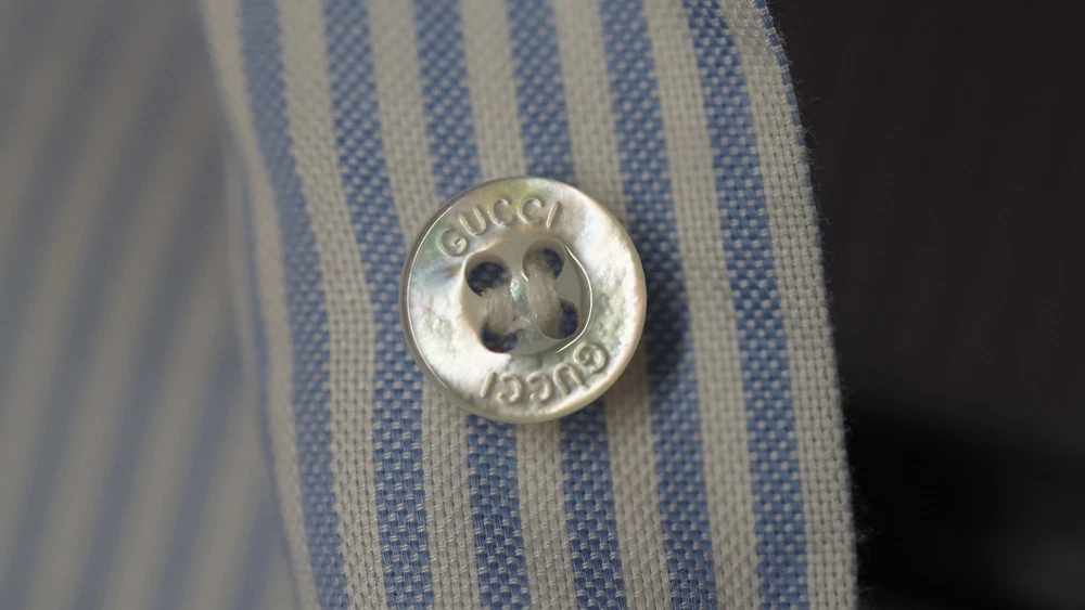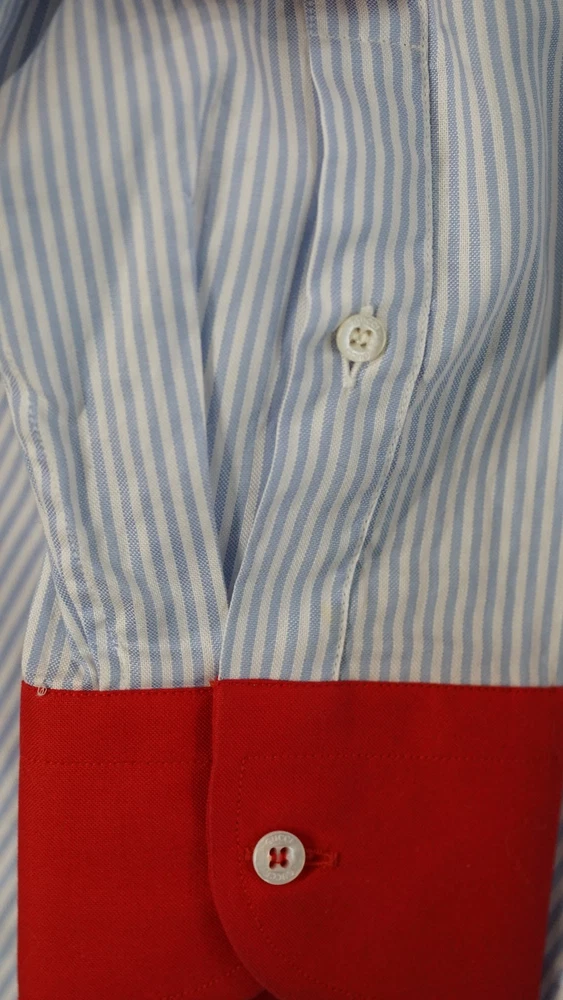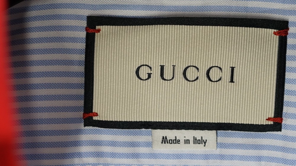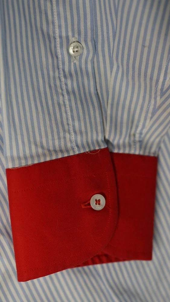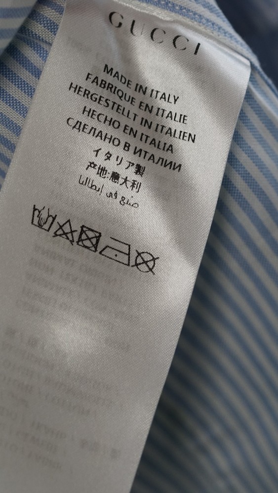 Gucci Striped Dress Shirt Blue with Red Collar & Cuffs Size 38 / 15 Item Specifics : Brand: Gucci Size: 38 / 15 (EU 38 / US-UK 15) Fit: Small / Slim Medium (see measurements) Color: Blue Pinstripe with Red Contrast Collar & Cuffs Style: Long Sleeve Button-Up Dress Shirt Condition: Pre-owned, excellent condition Made in Italy Description : Authentic Gucci striped dress shirt in blue with bold red collar and cuffs. A rare and striking piece that combines classic Italian tailoring with standout details. Perfect for collectors or anyone looking to add a unique luxury shirt to their wardrobe. Known for Gucci’s high-quality craftsmanship. Key Features : Classic blue pinstripe design Bold red point collar and French cuffs Button-front closure Luxury Italian tailoring Size 38 / 15 (fits like Small-Slim Medium) Measurements (approx): Chest: 96–98 cm / 37.5–38.5 in Shoulders: 42–44 cm / 16.5–17.3 in Sleeve Length: 63–65 cm / 24.8–25.6 in Back Length: 74–76 cm / 29–30 in Neck: 38 cm / 15 in Shipping : Global shipping available. Item ships within 2 business days via tracked service. Average delivery 4–8 days worldwide.