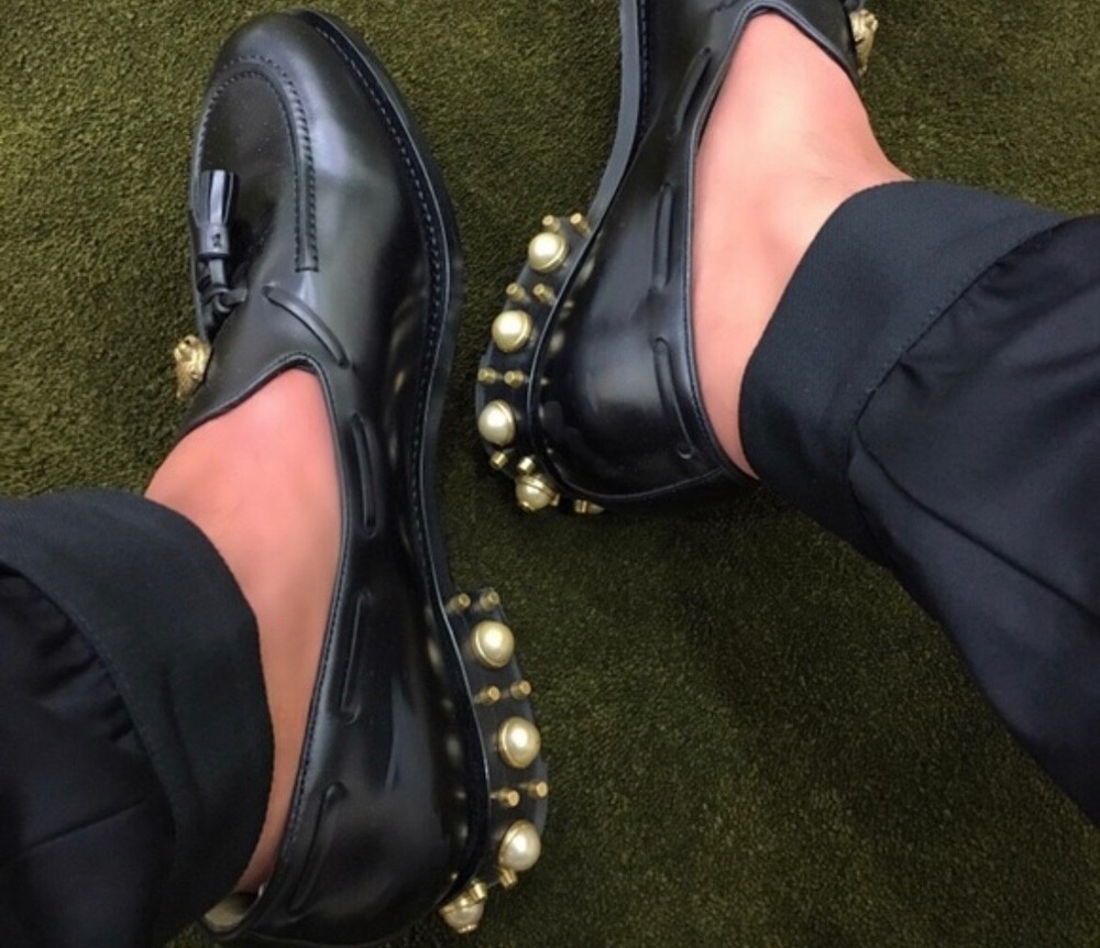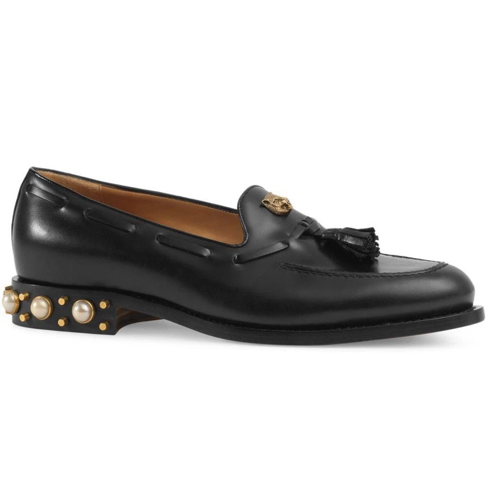 These Gucci loafers are pure luxury! The calfskin leather is buttery soft, and the pearl embellishments add a touch of elegance. The tassels with the brass tiger head give them a unique, stylish edge while keeping that classic Gucci vibe. They run slightly big, so perfect if you're between sizes. A must-have for any fashion-forward wardrobe!