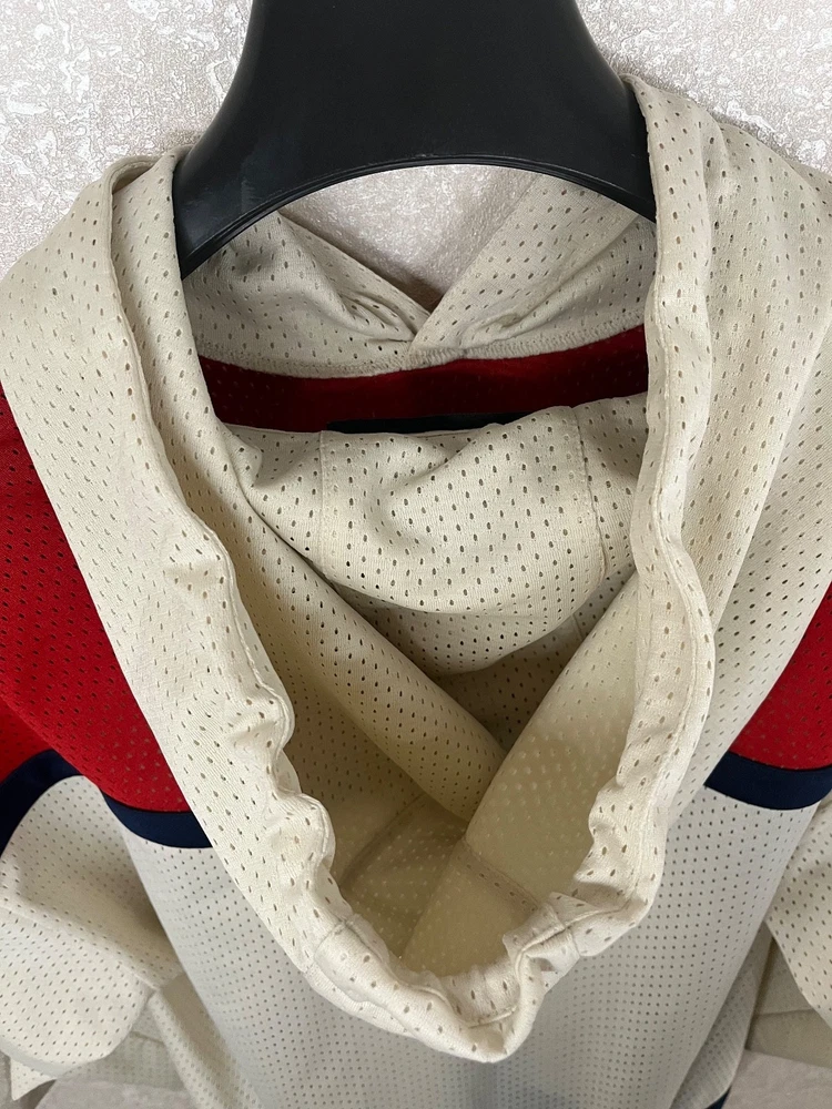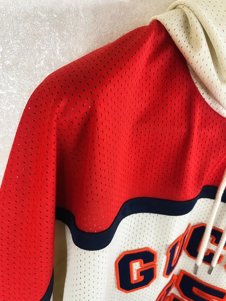 Gucci Mesh Hoodie - Red, White & Navy - Size S This Gucci mesh hoodie fuses luxury with a bold athletic aesthetic. Featuring varsity-style "GUCCI 25" embroidery, it stands out with its red, white, and navy colorway and breathable perforated mesh construction. Measurements (flat): Chest (pit to pit): 56 cm / 22 in Length (shoulder to hem): 73 cm / 28.7 in Sleeve length: 36 cm / 14.2 in Purchased in May 2023 from Selfridges, London. Proof of Purchase available. 100% Authentic Size Small with a loose, baggy fit - designed for a relaxed, oversized silhouette Short sleeves with drawstring hood Retro-inspired colorblock stripes Lightweight and ideal for layering or casual wear Shipping & Delivery Once paid, item is shipped within 1-2 business days. Items are shipped via Emirates Post Tracked Expedited Global Shipping Service. Items arrive globally on average between 3-8 Days depending on the country. Based on previous shipments: USA 4/5 Days France 5 Days Australia 6/8 Days South Africa 7 Days All the items I sell come with free shipping (unless stated otherwise) and I’m happy to accommodate you with a faster shipping service upon request; I would only charge the price difference. Returns: Accepted within 14 days under eBay’s policy. Item must be in original condition with tags/packaging. Returns showing signs of wear, washing, or odors may be denied. Buyer pays return shipping unless not as described.