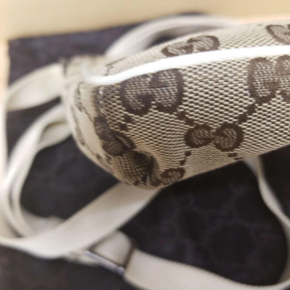 This Gucci mini shoulder bag is a dream—perfect size for essentials without being bulky. The beige, brown, and white combo is so versatile, matching everything effortlessly. The leather feels luxurious yet durable, and the pre-loved condition just adds to its charm. Love how it elevates both casual and dressy looks. A must-have for any fashion lover!