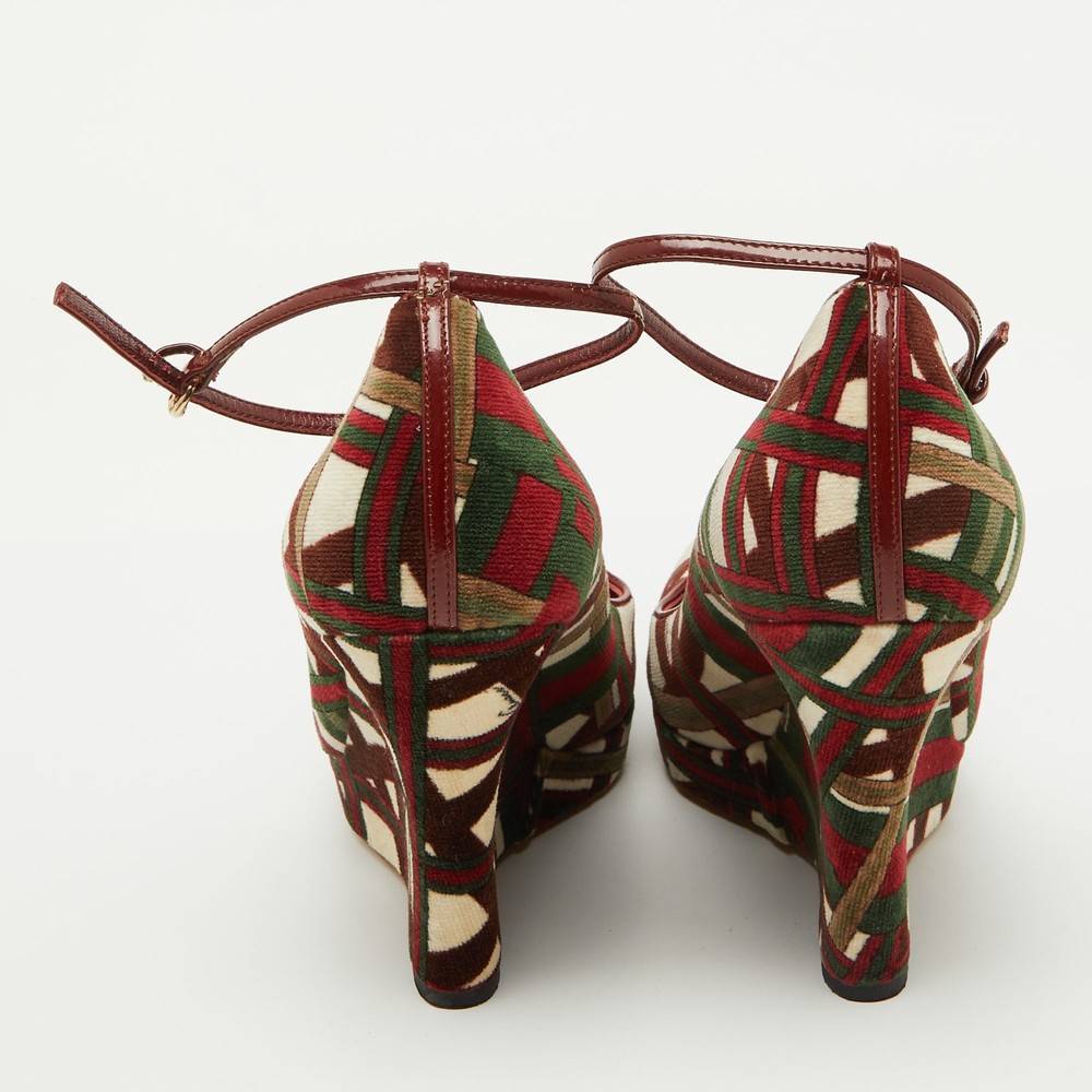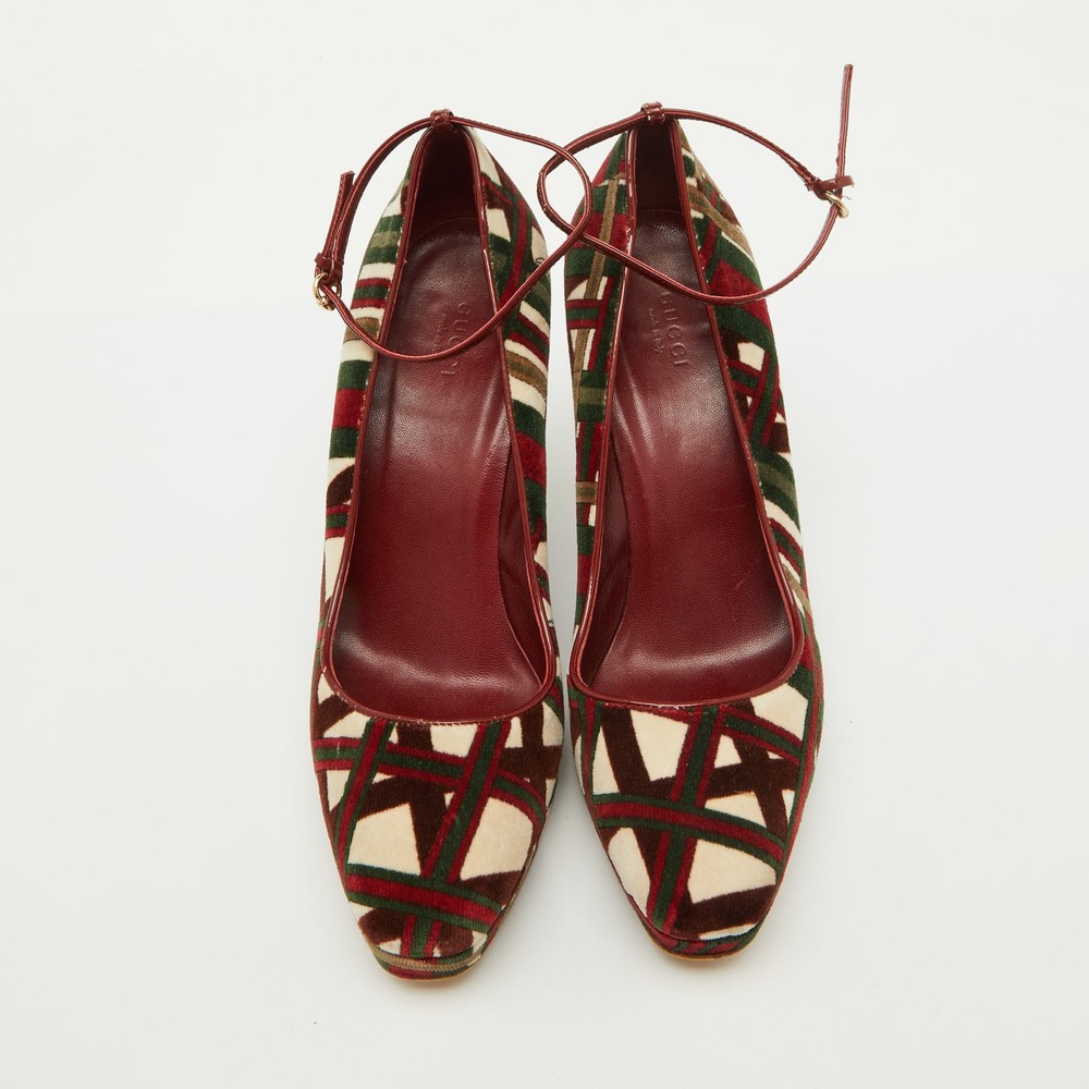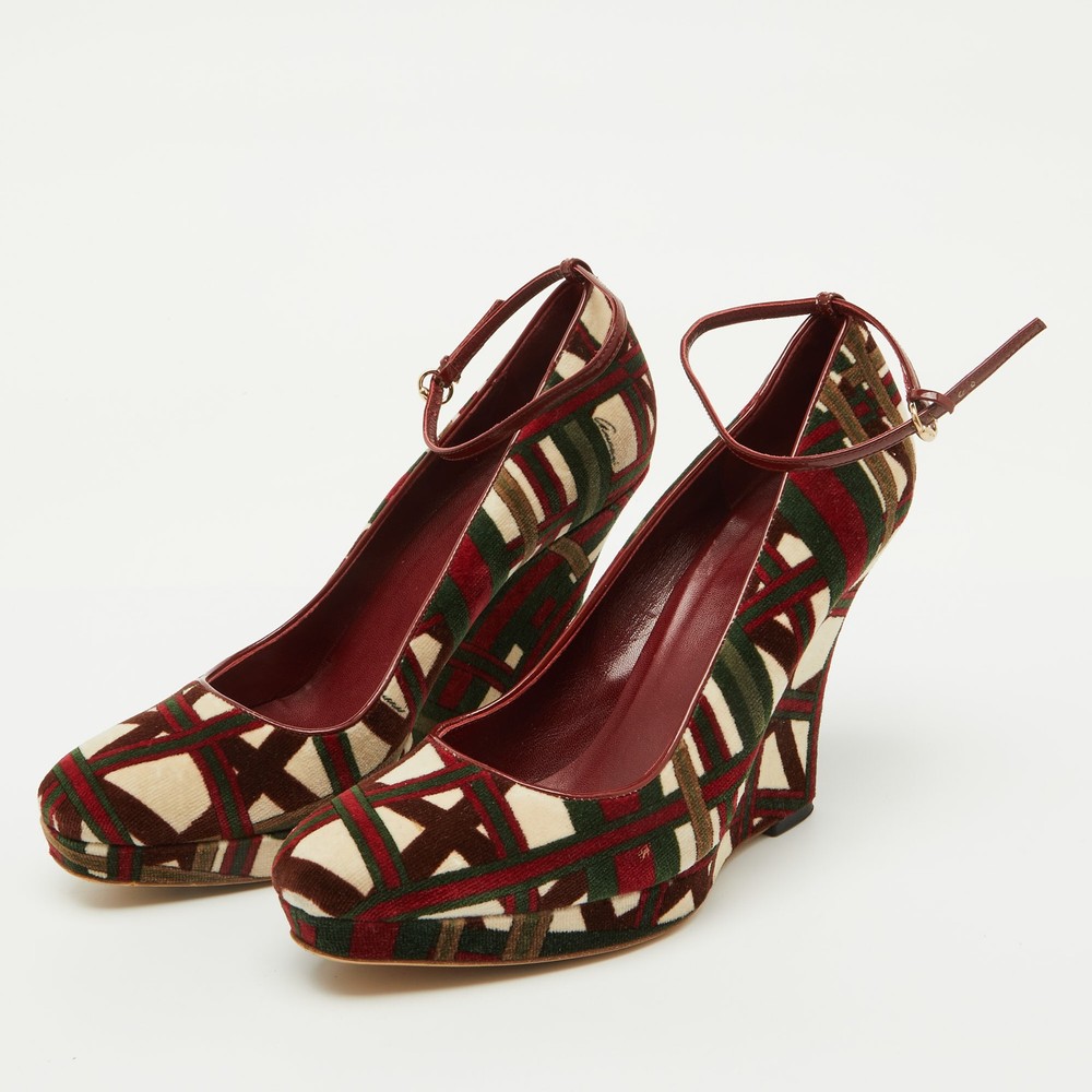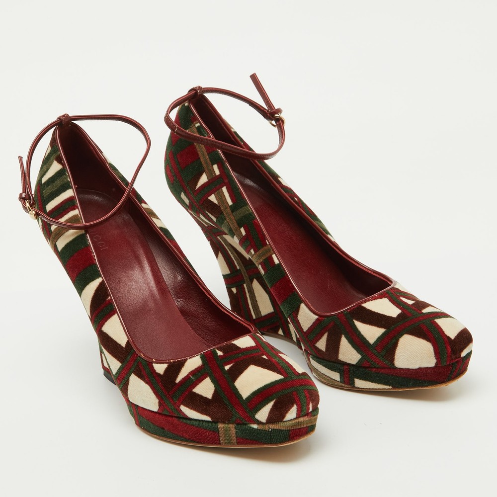 The fashion house’s tradition of excellence, coupled with modern design sensibilities, works to make these Gucci wedge pumps a fabulous choice. Theyll help you deliver a chic look with ease.Certified by The Luxury Closet - This item has gone through a detailed authentication process overseen by our experts. We offer a lifetime guarantee of authenticity on all our items. Import duties, taxes and charges are not included in the item price. These charges are the buyers responsibility. Please check with your country’s customs office to determine what these additional cost will be prior to buying. Our eBay Store About Us Contact Us Add to Favorite Sellers Gucci Multicolor Pattern Velvet Platform Wedge Pumps Size 39.5 $187 The fashion house’s tradition of excellence, coupled with modern design sensibilities, works to make these Gucci wedge pumps a fabulous choice. Theyll help you deliver a chic look with ease. Product Details Brand Color Multicolor Dimensions Material Velvet Size 39.5 Outsole Width 7.5 cm Outsole Length 26 cm Heel Height 11.5 cm Includes The Luxury Closet Packaging Certified by The Luxury Closet This item has gone through a detailed authentication process overseen by our experts. We offer a lifetime guarantee of authenticity on all our items. How We Check The in-house team of experts at The Luxury Closet is highly trained to verify the authenticity and the condition of the luxury products. They ensure that only 100% authentic items are put on sale.The evaluation process is unique with its own mix of assessment criteria and differs according to the category. Each item is evaluated based on the following combination of hallmarks, hardware, stitching, symmetry, material, craftsmanship, stamping, codes, hologram stickers, and packaging. Our authenticators also check if the items have been modified or amended (e.g., aftermarket diamonds, replaced batteries, repaired bags, etc.) International Buyers Import duties, taxes and charges are not included in the item price. These charges are the buyers responsibility. Please check with your country’s customs office to determine what these additional cost will be prior to buying.
