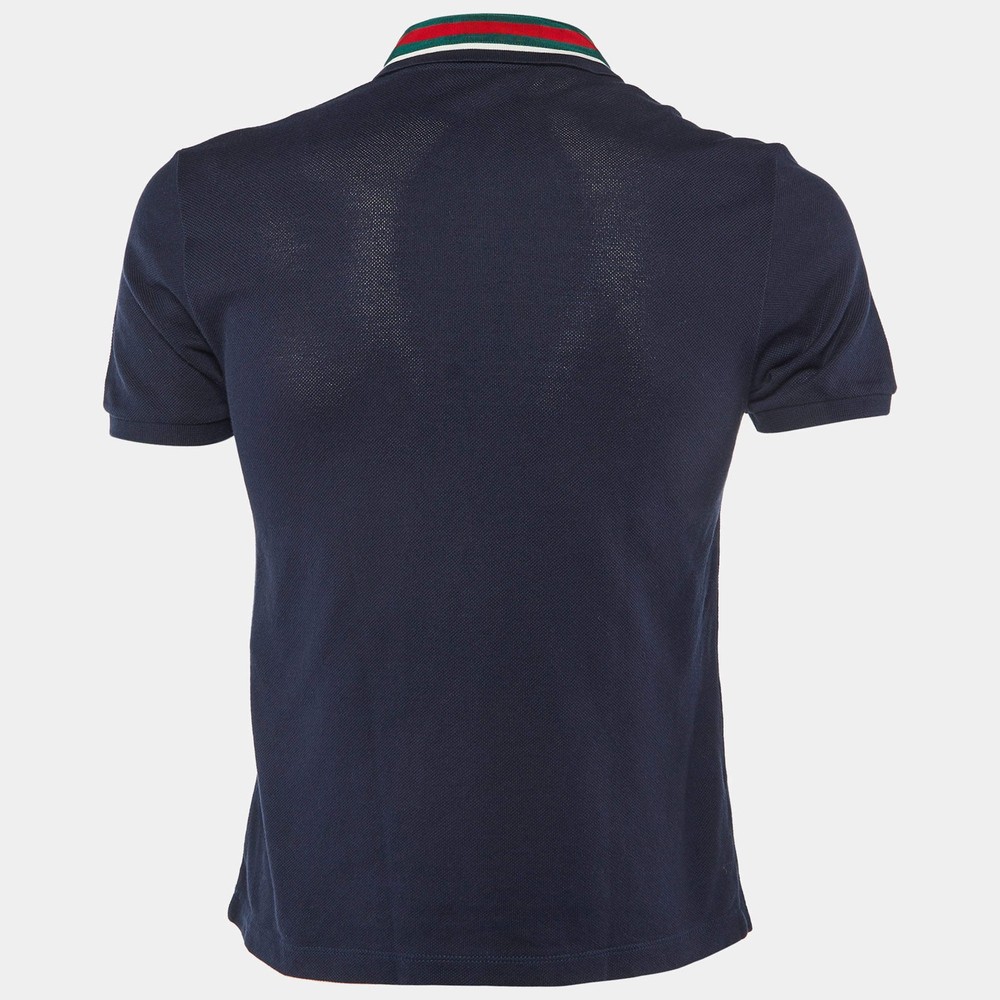 Our eBay Store About Us Contact Us Add to Favorite Sellers Gucci Navy Blue Cotton Pique Polo TShirt XS A classic reimagined, this navy cotton piqué polo from Gucci fuses casual polish with premium craftsmanship. Subtle details and a clean finish make it a timeless essential. Product Details Brand Gucci Color Navy Blue Size EXTRA SMALL Includes The Luxury Closet Packaging Certified by The Luxury Closet This item has gone through a detailed authentication process overseen by our experts. We offer a lifetime guarantee of authenticity on all our items. How We Check The in-house team of experts at The Luxury Closet is highly trained to verify the authenticity and the condition of the luxury products. They ensure that only 100% authentic items are put on sale.The evaluation process is unique with its own mix of assessment criteria and differs according to the category. Each item is evaluated based on the following combination of hallmarks, hardware, stitching, symmetry, material, craftsmanship, stamping, codes, hologram stickers, and packaging. Our authenticators also check if the items have been modified or amended (e.g., aftermarket diamonds, replaced batteries, repaired bags, etc.) International Buyers Import duties, taxes and charges are not included in the item price. These charges are the buyers responsibility. Please check with your country’s customs office to determine what these additional cost will be prior to buying.