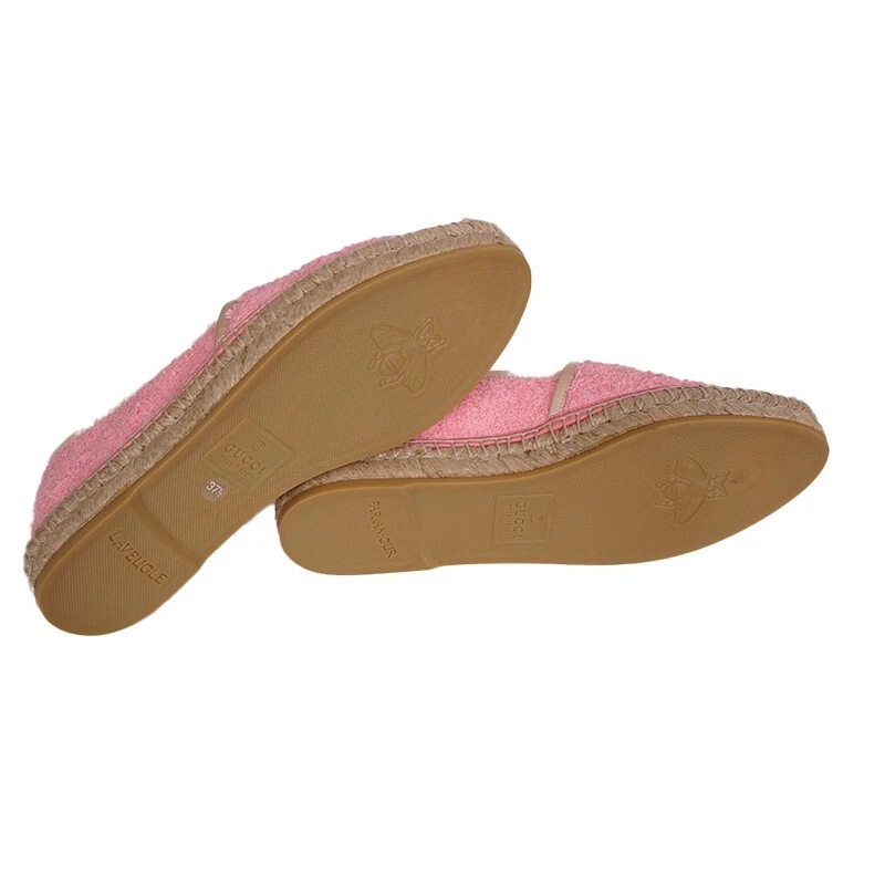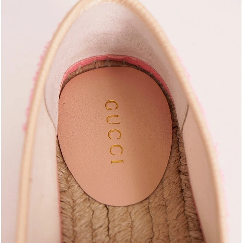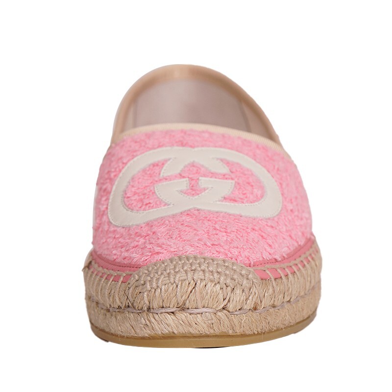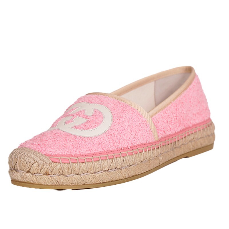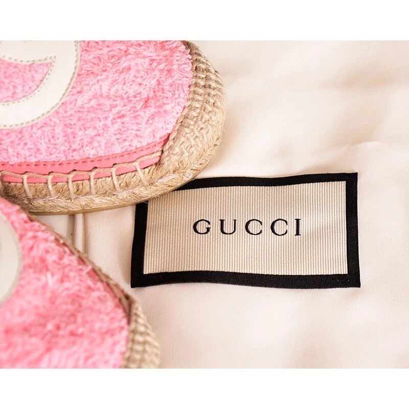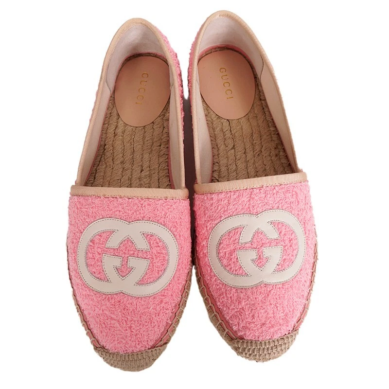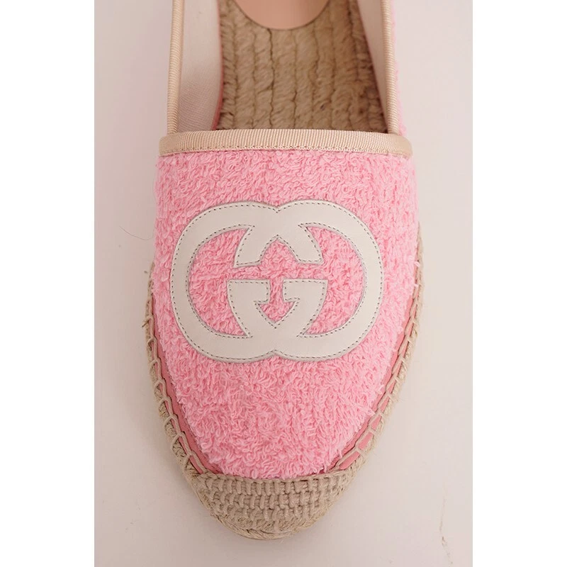 HTML 5 Template NEW $620 GUCCI Bubble Gum Pink Terry Cloth Large Ivory GG Logo Espadrille Flats Size(s) 37.5 (US 7.5) Description New with box. Purchased from Gucci. Retail $650. Photos are of the actual item. Authentic Gucci slides in a sleek style for spring and summer. Terrycloth upper. Beige grosgrain trim details. Woven cord detailing at sole edge. Large interlocking Ivory GG leather logo detail at toe. Rubber soles. Materials made in Italy. Shoe constructed in Spain. Style 695070. Perfect with everything dresses to shorts. * All items are clean and from a non-smoking home. * ** Payment is expected within 5 days. Please read measurement carefully as sizes vary with designers, please ask for additional measurements if you are unsure. No refunds but exchange is permitted. Items are described as accurately as possible. In cases where refunds are sent the original shipping will not be refunded. All items are AUTHENTIC. Please ask all questions before purchasing. Thank you! **