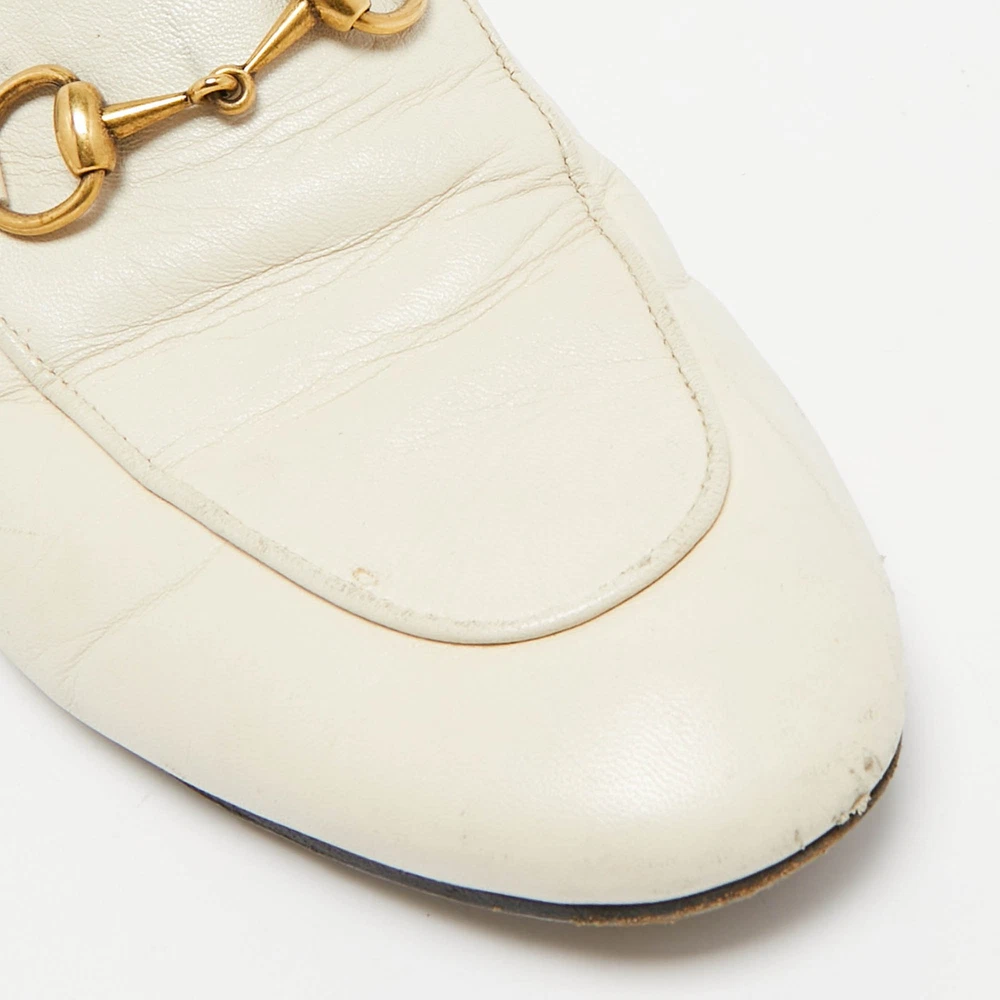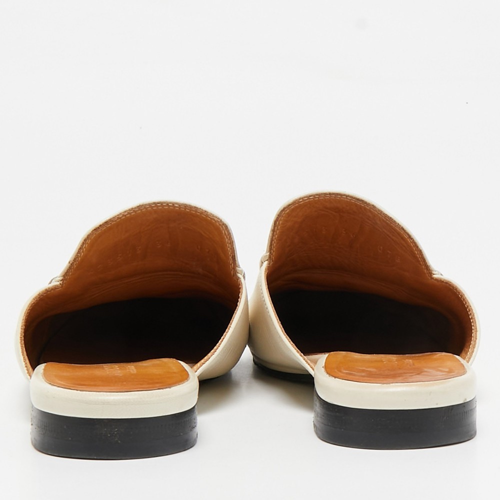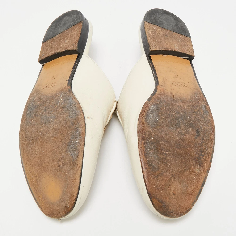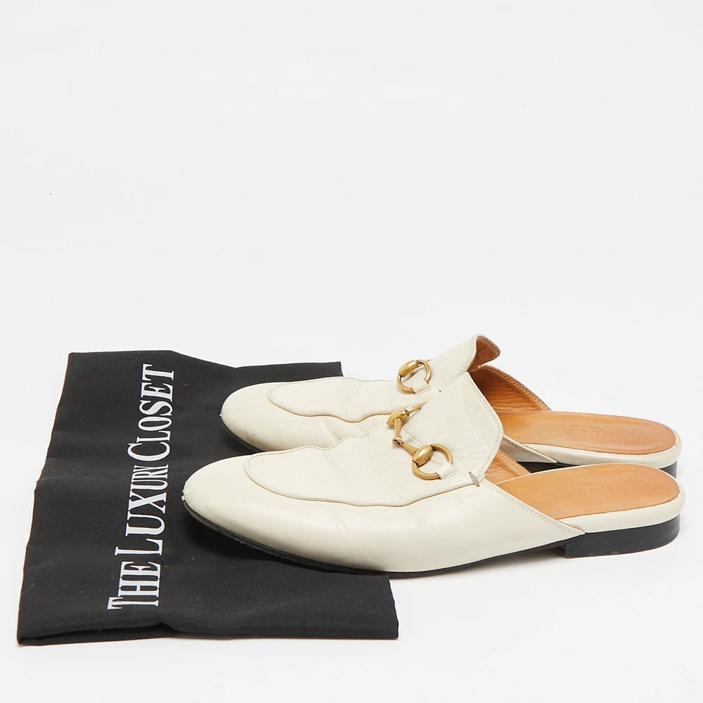 Let this comfortable pair be your first choice when youre out for a long day. These Gucci shoes have well sewn uppers beautifully set on durable soles.Certified by The Luxury Closet - This item has gone through a detailed authentication process overseen by our experts. We offer a lifetime guarantee of authenticity on all our items. Import duties, taxes and charges are not included in the item price. These charges are the buyers responsibility. Please check with your country’s customs office to determine what these additional cost will be prior to buying. Our eBay Store About Us Contact Us Add to Favorite Sellers Gucci Cream Leather Princetown Mules Size 36 $190.3 Let this comfortable pair be your first choice when youre out for a long day. These Gucci shoes have well sewn uppers beautifully set on durable soles. Product Details Brand Color Cream Dimensions Material Leather Size 36 Outsole Width 8 cm Outsole Length 25 cm Heel Height Includes The Luxury Closet Packaging Certified by The Luxury Closet This item has gone through a detailed authentication process overseen by our experts. We offer a lifetime guarantee of authenticity on all our items. How We Check The in-house team of experts at The Luxury Closet is highly trained to verify the authenticity and the condition of the luxury products. They ensure that only 100% authentic items are put on sale.The evaluation process is unique with its own mix of assessment criteria and differs according to the category. Each item is evaluated based on the following combination of hallmarks, hardware, stitching, symmetry, material, craftsmanship, stamping, codes, hologram stickers, and packaging. Our authenticators also check if the items have been modified or amended (e.g., aftermarket diamonds, replaced batteries, repaired bags, etc.) International Buyers Import duties, taxes and charges are not included in the item price. These charges are the buyers responsibility. Please check with your country’s customs office to determine what these additional cost will be prior to buying.