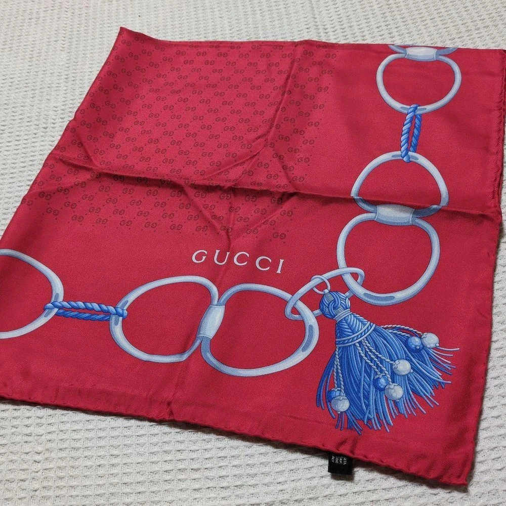 Item Title Gucci Chain Design Scarf Red From Japan Payment Supports managed payments Please pay within 5 days after auction is finished. About Us We are located in Japan. It's our pleasure to make you happy by proposing our recommend item. If you have any questions or request about items, please feel free to ask us. International Buyers - Please Note: -Import duties, taxes, and charges are not included in the item price or shipping charges. These charges are the buyer's responsibility. -Please check with your country's customs office to determine what these additional costs will be prior to bidding/buying. -These charges are normally collected by the delivering freight (shipping) company or when you pick the item up - do not confuse them for additional shipping charges. -We do not mark merchandise values below value or mark items as - gifts - The US and International government regulations prohibit such behavior. Thank you for your understanding.
