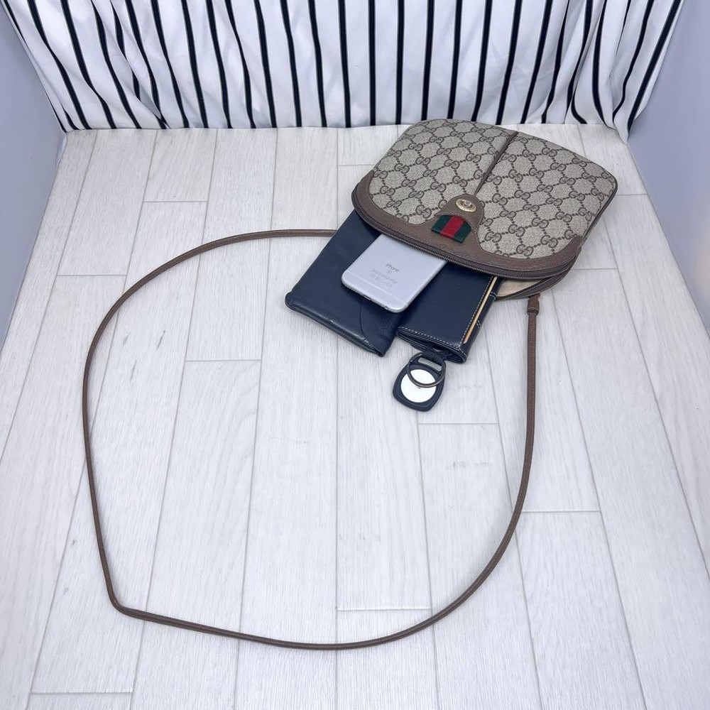 Gucci GG Supreme Sherry Line Leather Shoulder Bag Pre-Owned
