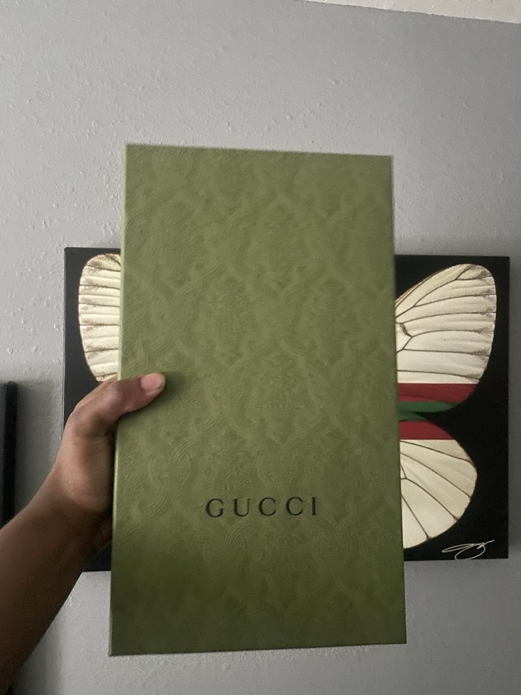 The Gucci Slides in size 14 are a stylish and comfortable option for casual occasions during the summer season. Made in Italy, these black slides feature the iconic Gucci logo accent, a slip-on closure, and a rubber outsole and insole for added durability and support. These slides are a fashionable choice for men looking for a trendy and high-quality sandal option from the renowned Gucci brand.