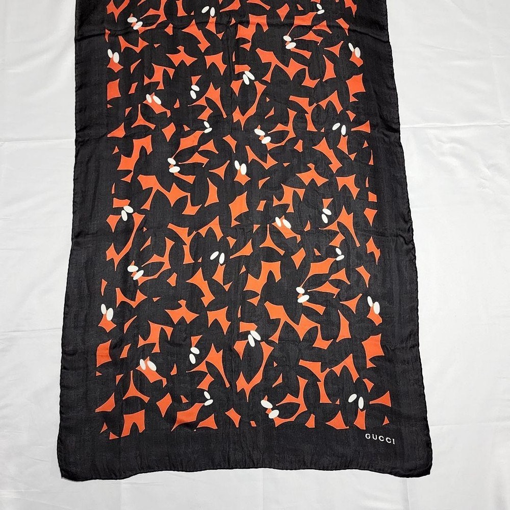 Item Title Gucci Stole Chiffon Floral Black Orange Boxed From Japan Payment Supports managed payments Please pay within 5 days after auction is finished. About Us We are located in Japan. It's our pleasure to make you happy by proposing our recommend item. If you have any questions or request about items, please feel free to ask us. International Buyers - Please Note: -Import duties, taxes, and charges are not included in the item price or shipping charges. These charges are the buyer's responsibility. -Please check with your country's customs office to determine what these additional costs will be prior to bidding/buying. -These charges are normally collected by the delivering freight (shipping) company or when you pick the item up - do not confuse them for additional shipping charges. -We do not mark merchandise values below value or mark items as - gifts - The US and International government regulations prohibit such behavior. Thank you for your understanding.