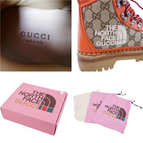 Gucci The North Face 21AW Boots Size 36 US 6 GG Canvas Leather With Box Used Description Unused. No noticeable scratches or stains. With box. Material: Calf leather/canvas Color: Orange Size: 36 (equivalent to 23 cm) Outsole: 27 cm Width: 9.5 cm Shaft height: 13 cm Bulk Discount Discounts are available for bulk purchases of small items! For more information, please contact us by specifying the desired product. Payment We accept ebay Management only. Please make a payment withen 3days after the purchase. Shipping Fedex or Japan Post I am sorry to inform you but I do NOT ship to the address which is not registered on eBay. I will inform you the tracking number by email once shipped it out. The item will be shipped out from Japan. International Buyers - Please Note: ·Import duties, taxes and charges are not included in the item price or shipping charges. These charges are the buyers responsibility. ·Please check with your countrys customs office to determine what these additional costs will be prior to bidding/buying. ·These charges are normally collected by the delivering freight (shipping) company or when you pick the item up do not confuse them for additional shipping charges. ·We do not mark merchandise values below value or mark items as gifts US and International government regulations prohibit such behavior. Provided by HARU