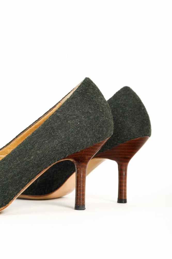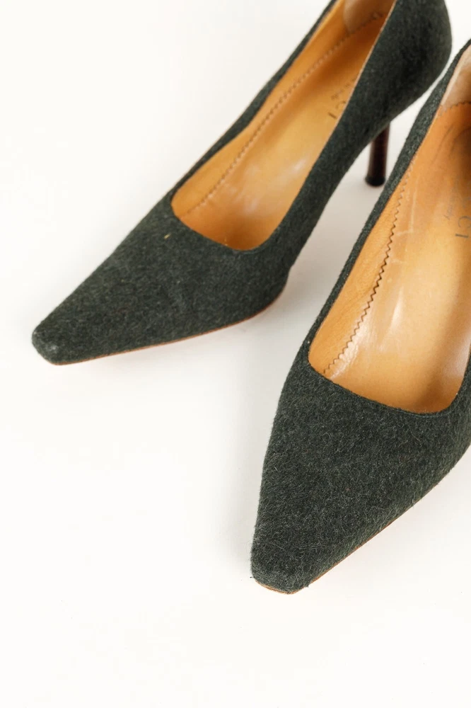Gucci Tom Ford Era Green Wool Pointed-Toe Heels Size 7.5B Designer Shoes