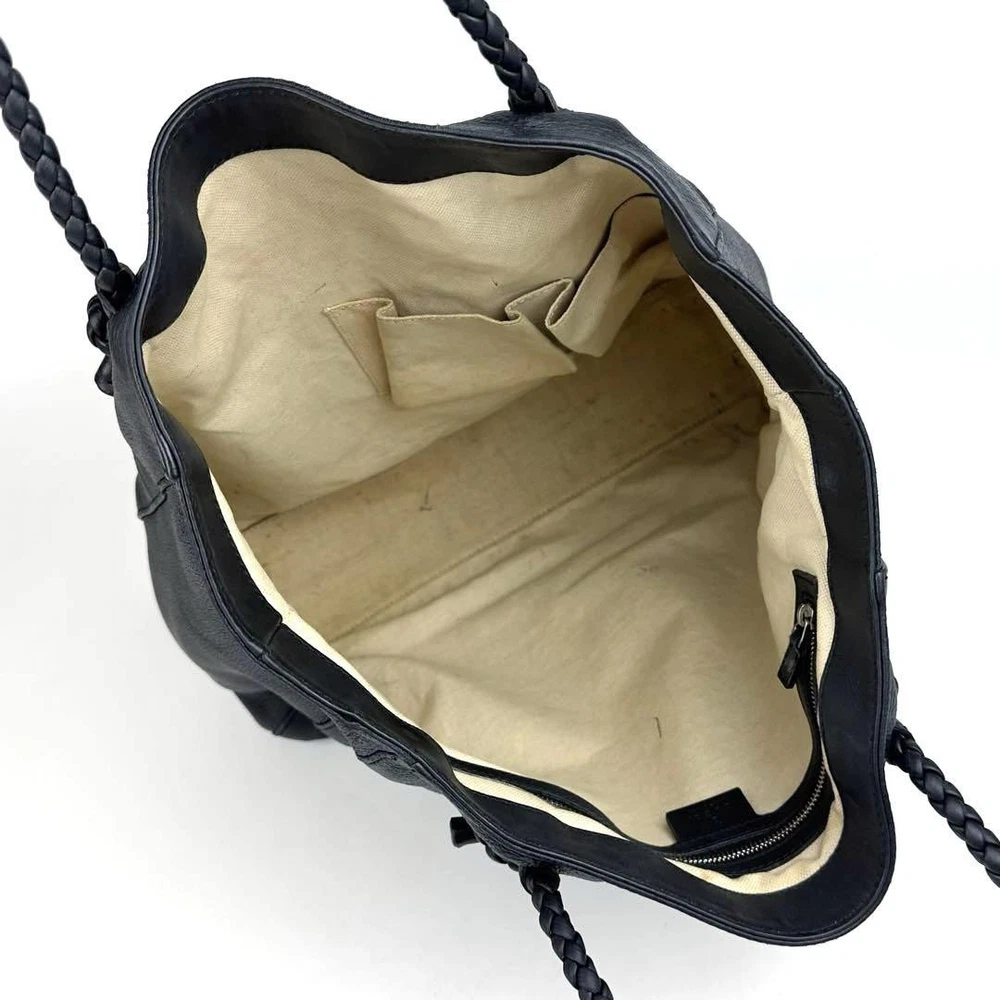 Gucci Tote Bag GG Interlocking Black Calf Leather Used